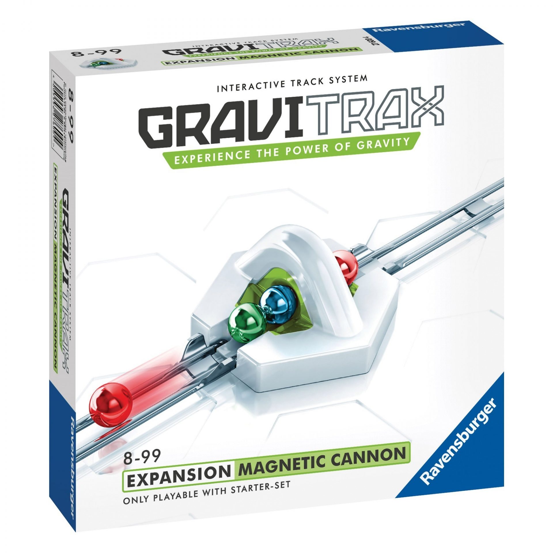Launch your marble through your run with the amazingly powerful “GraviTrax Magnetic Cannon”! Simply place two marbles in front of the “Cannon”; when your marble hits, it sends the front marble blasting down the track! A high-powered magnet gives the marble a burst of speed to help extend your run up inclines and down tracks. A great addition to any “GraviTrax Starter-Set”; comes with 3 additional colored marbles. Experience the power of gravity and educational fun today!