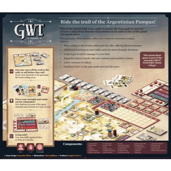 In Great Western Trail: Argentina, you own a vast estancia in Argentina at the end of the 19th century, and you will need to travel the plains of the Pampas with your cattle to deliver them to the main train station in Buenos Aires.