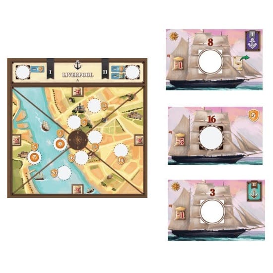 The player board features a new type of worker — farmers — and different paths await on the game board to confront you with more choices. Will you take the road with buildings or a path past farmers? Maybe you’ll have the chance to use your cows — well, the strength on your cow cards — to help farmers, getting them on your side and adding grain, a new type of resource, to your income, with grain being used for boat and city tiles.