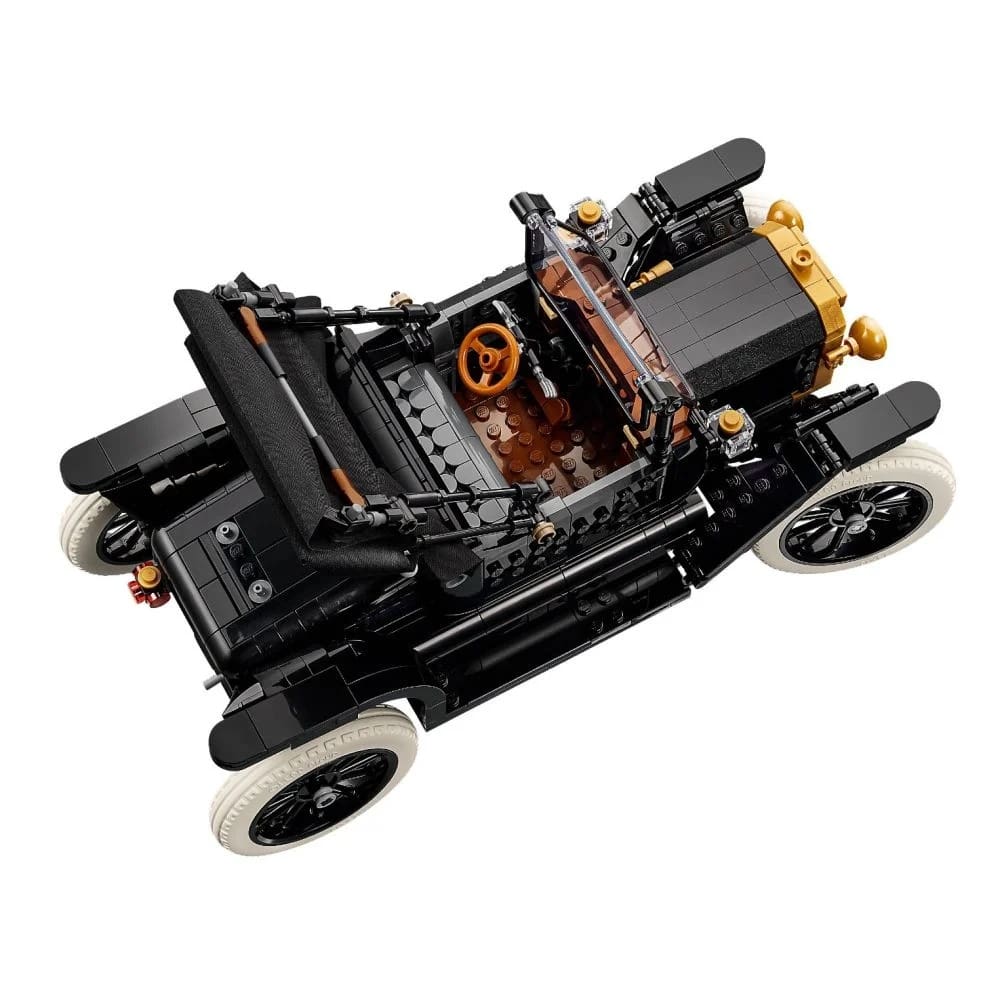 Celebrate automotive history with the LEGO® Icons Ford Model T, a detailed 1,060-piece model car kit for adults. This replica of the 1910s classic features a fold-back fabric roof, fold-down split windshield, and a single opening passenger door. The rear trunk opens, the driver’s cab is fully detailed with working steering, and lifting the seat reveals the gas tank. Hood panels lift from both sides to show the engine, and turning the crank spins the fan. Finished with black bodywork, golden accents, and tall spoked rims with slim white rubber tires, it makes an elegant display for any home or office. Use the LEGO Builder app to zoom, rotate in 3D, track progress, and follow step-by-step digital instructions.