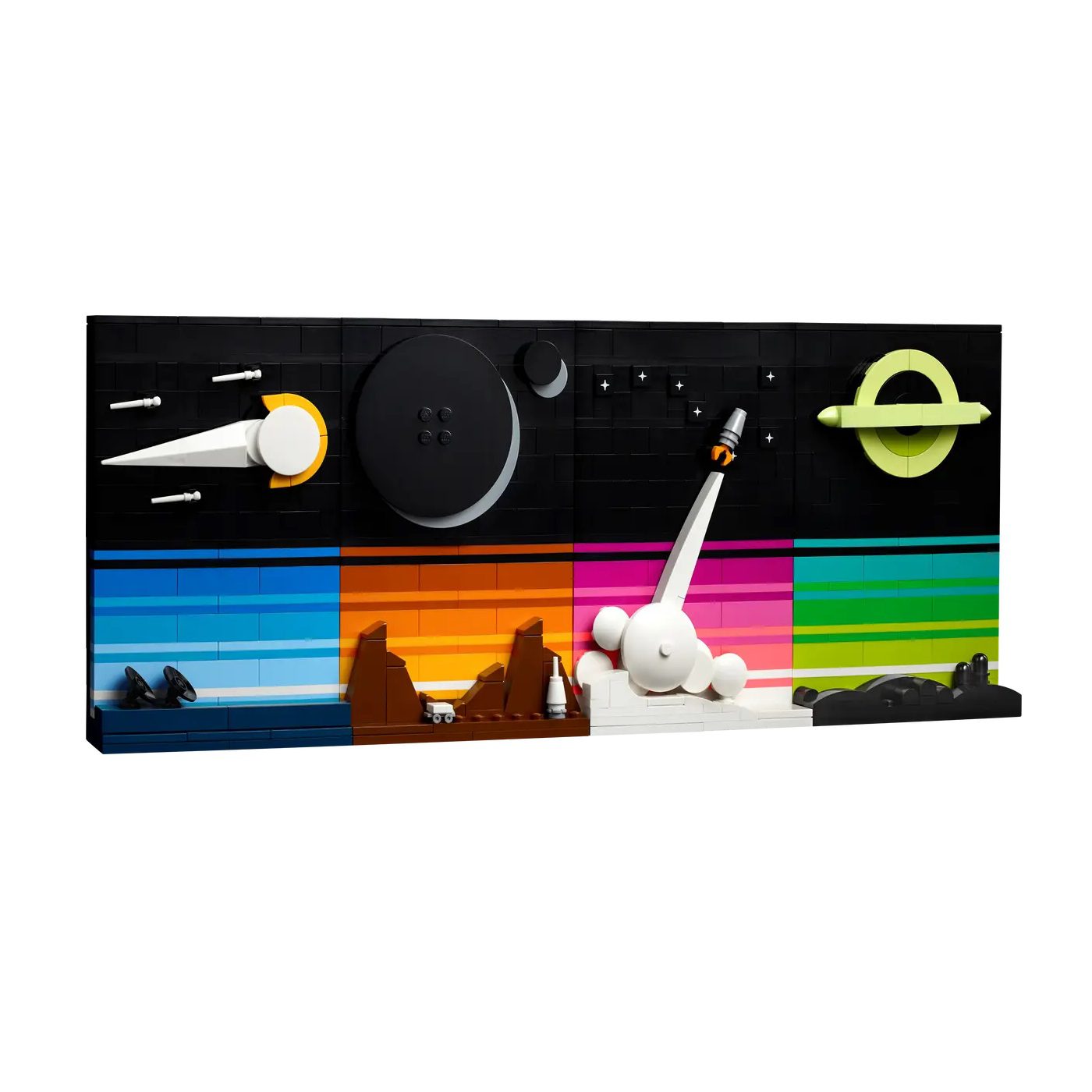 - Original designs – Build colourful images of an observatory for viewing comets and shooting stars, a moon base and lunar eclipse, a space shuttle and a black hole