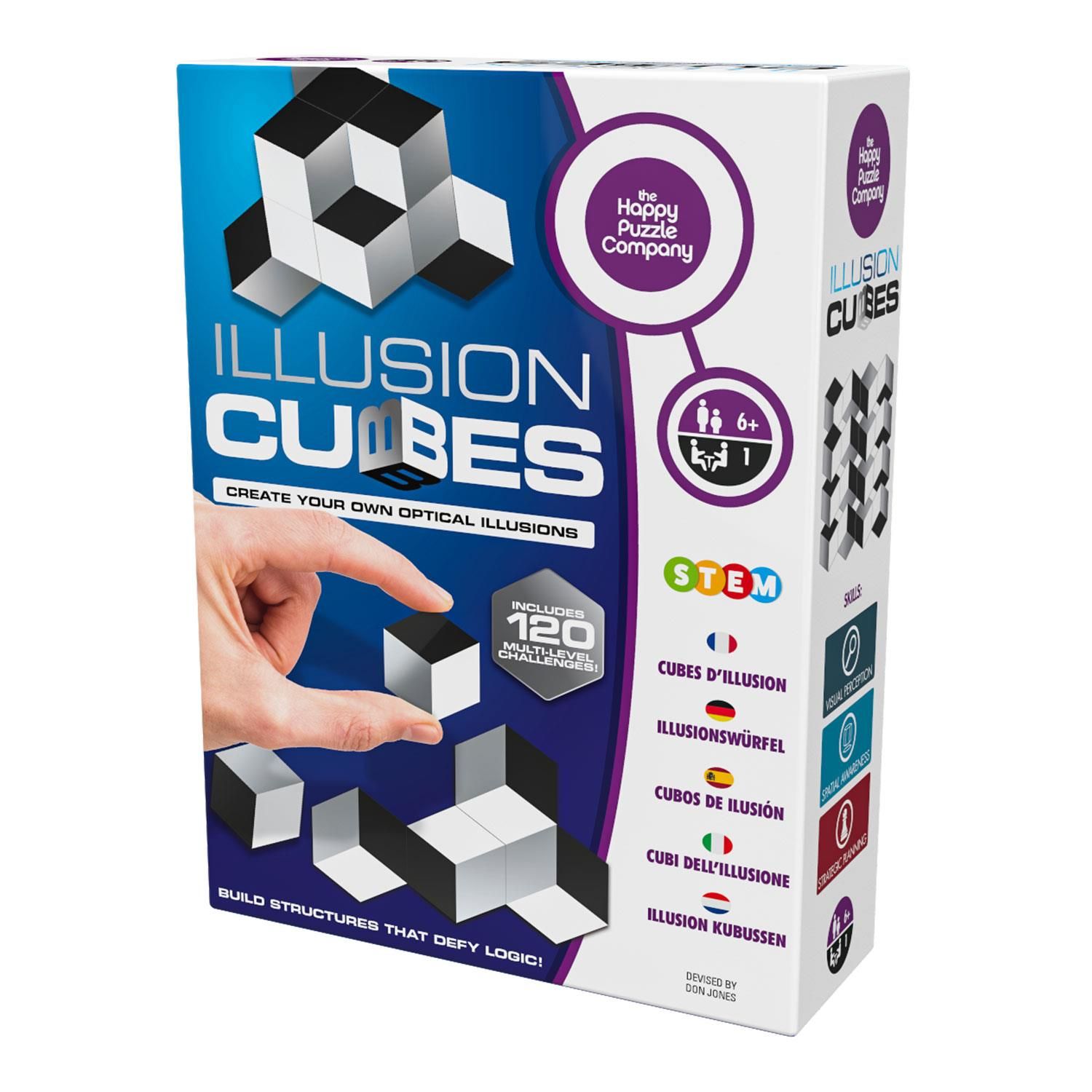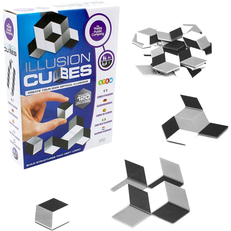 The 24 double-sided Illusion Cube tiles inside this box will allow you to explore, create and amaze yourself as you build your very own optical illusions. 120 challenges have been included to get you started, before you begin making your own remarkable illusion creations. An amazing idea!