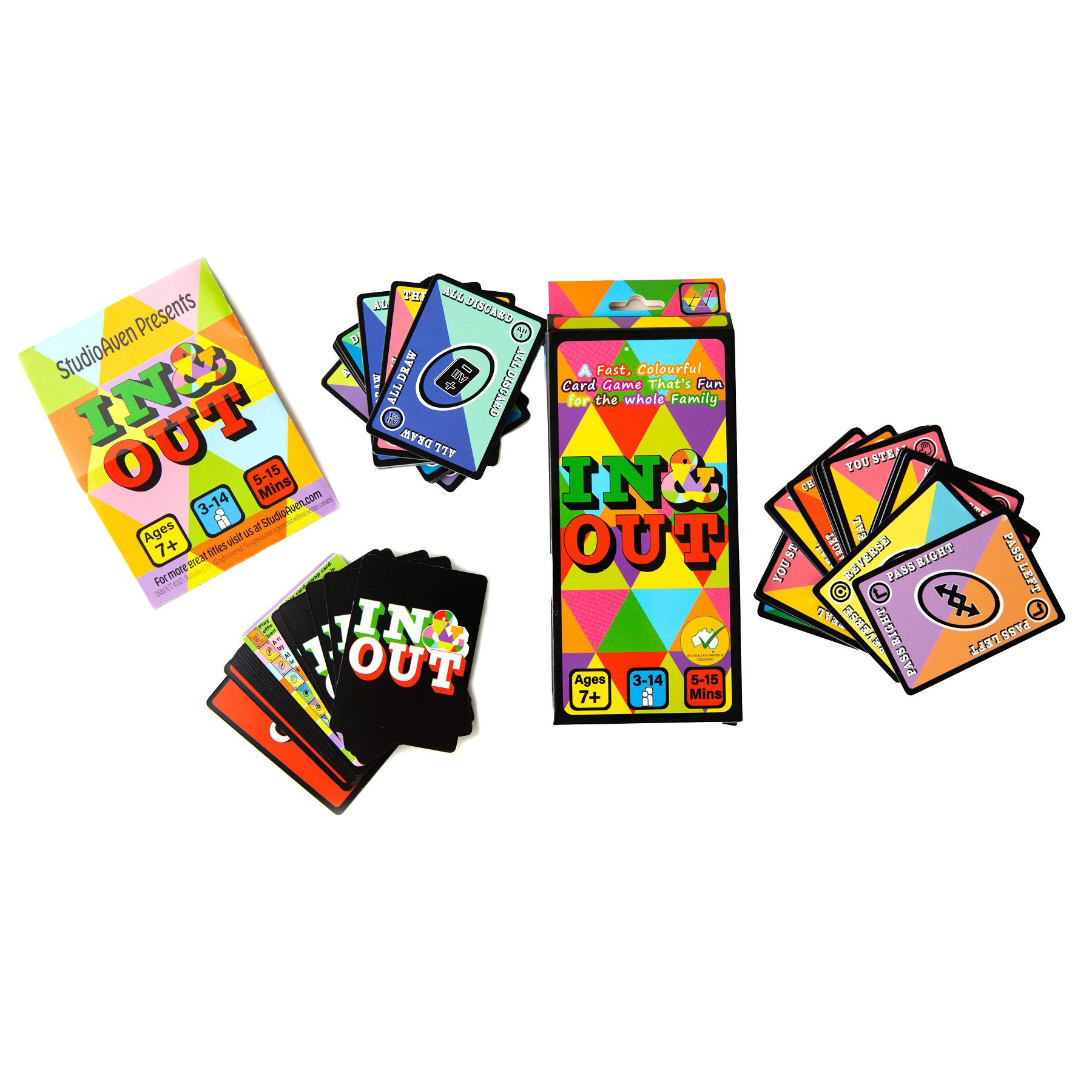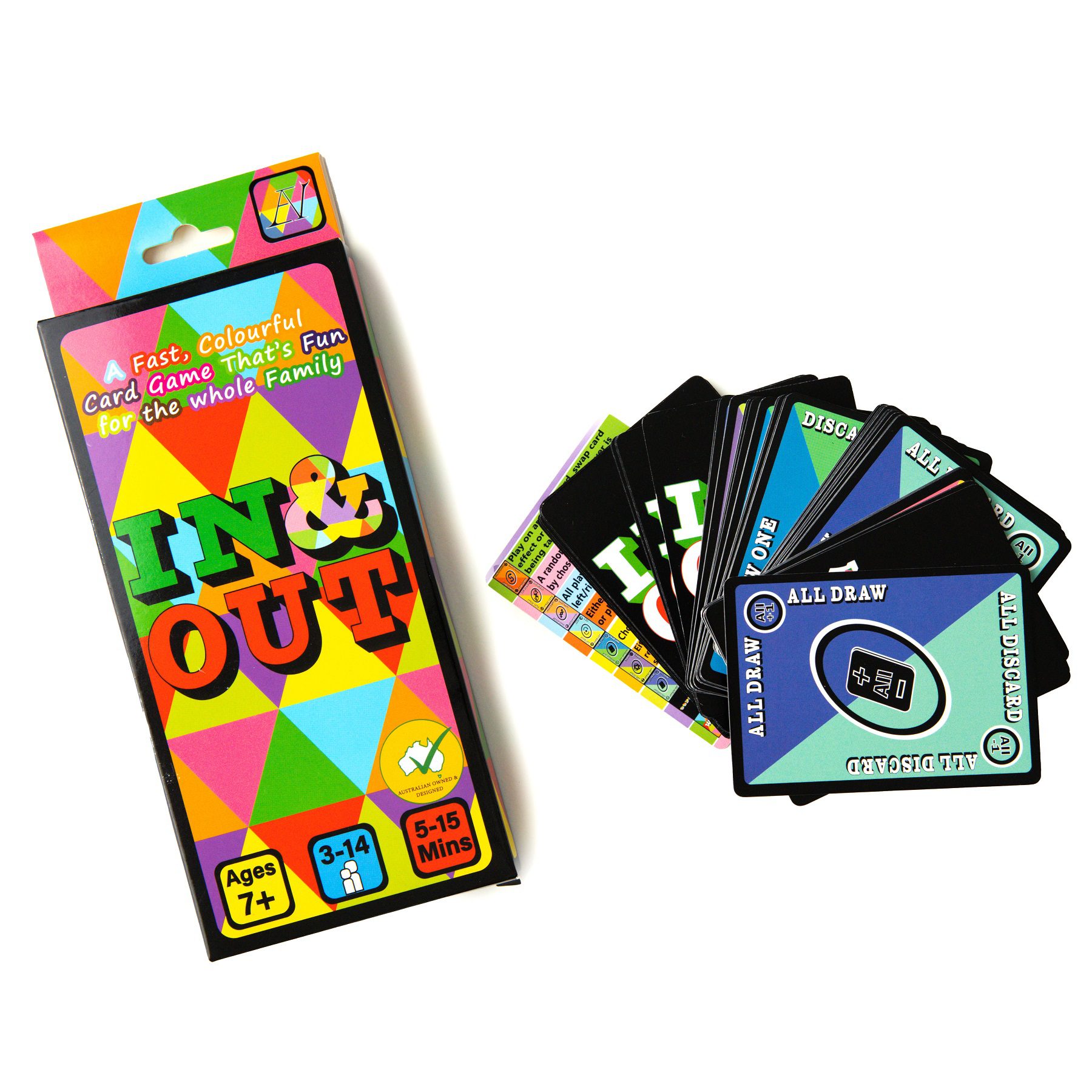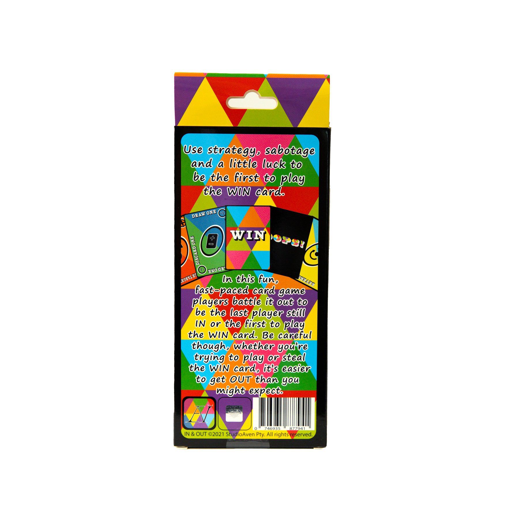 In this fun, fast-paced card game, players battle it out to be the last player still IN or the first to play the WIN card. Be careful though, whether you’re trying to play or steal the WIN card, it’s easier to get OUT than you might expect.
