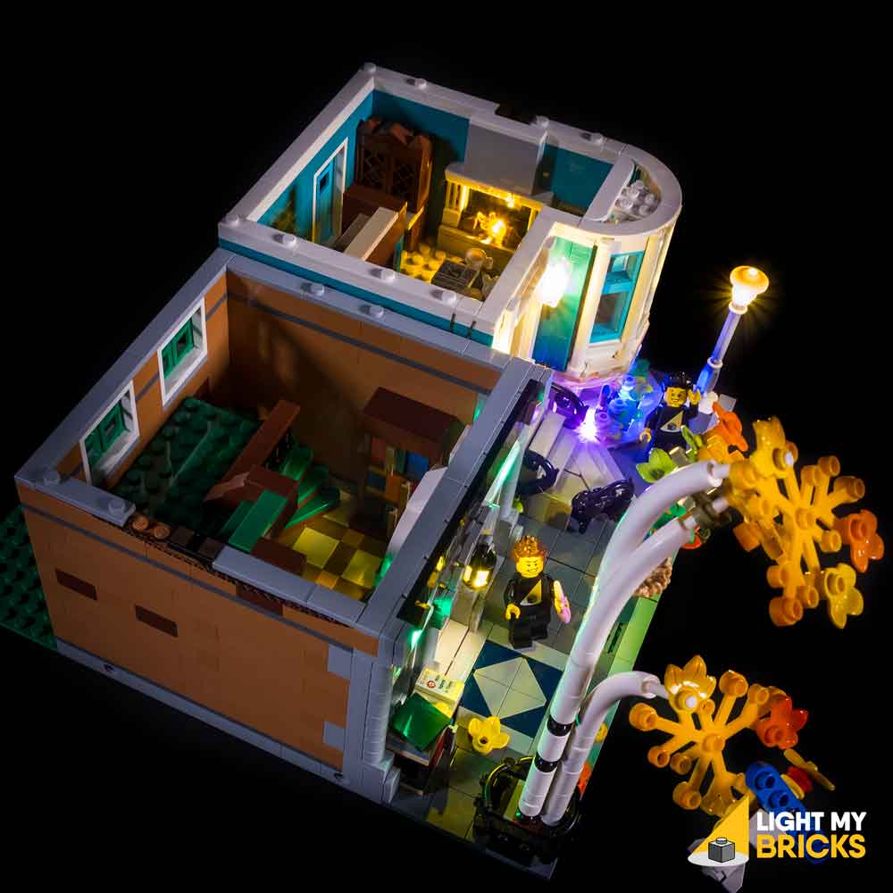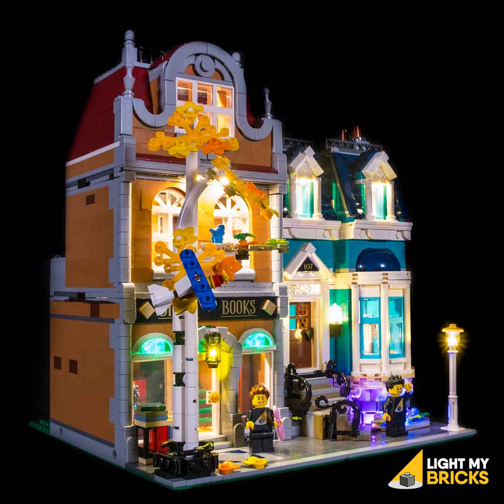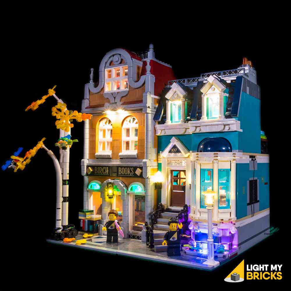 The Light My Bricks Bookshop light kit comes with 26 individual lights and comes with a host of features. Included are wireless connectors between each storey, allowing full access and playability of your modular.