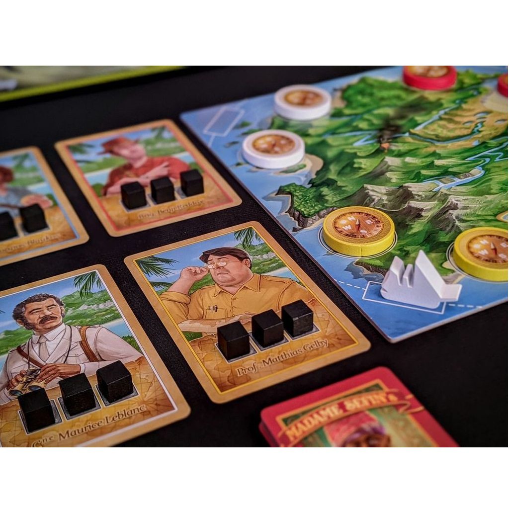 Treasures are distributed only if enough map cards were played in the landing, so usually more than one player needs to contribute cards for loot to be found there. You must then cooperate with your fellow treasure hunters to assemble the maps to find the loot, while at the same time ruthlessly competing with them to get the biggest share of the loot for yourself. It is a pirate treasure after all, arrr!