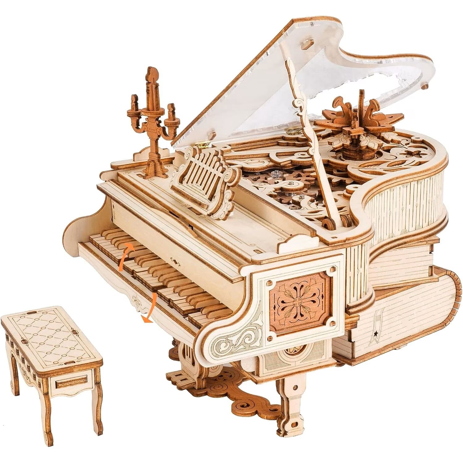 The ROKR Magic Piano Music Box 3D Wooden Puzzle features 223 pieces to assemble a mesmerizing Magic Piano. Wind it up and watch it play by itself while it plays a relaxing music. Perfect for music lovers and puzzle enthusiasts, this high-quality wooden puzzle provides hours of entertainment. Buy now and bring some magic into your life!