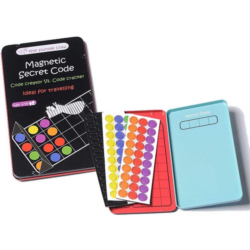 Secret Code or Matermind – One of Purple Cow’s line of Magnetic travel games. Compact and chique, there is a variety of 25 classic board games designed in a slim tin case, printed both sides with magnetic playing pieces. Fun and affordable travel games, for all ages.
