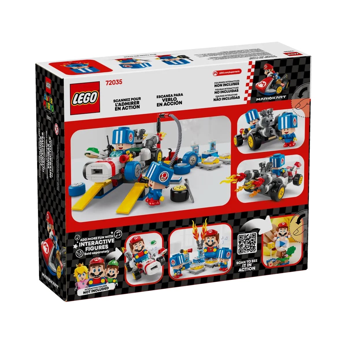 - Interactive play – Place LEGO® Mario™, LEGO® Luigi™ or LEGO® Peach™ (figures not included) in the kart or on the Action Tags of the Customization Machines for digital interactions