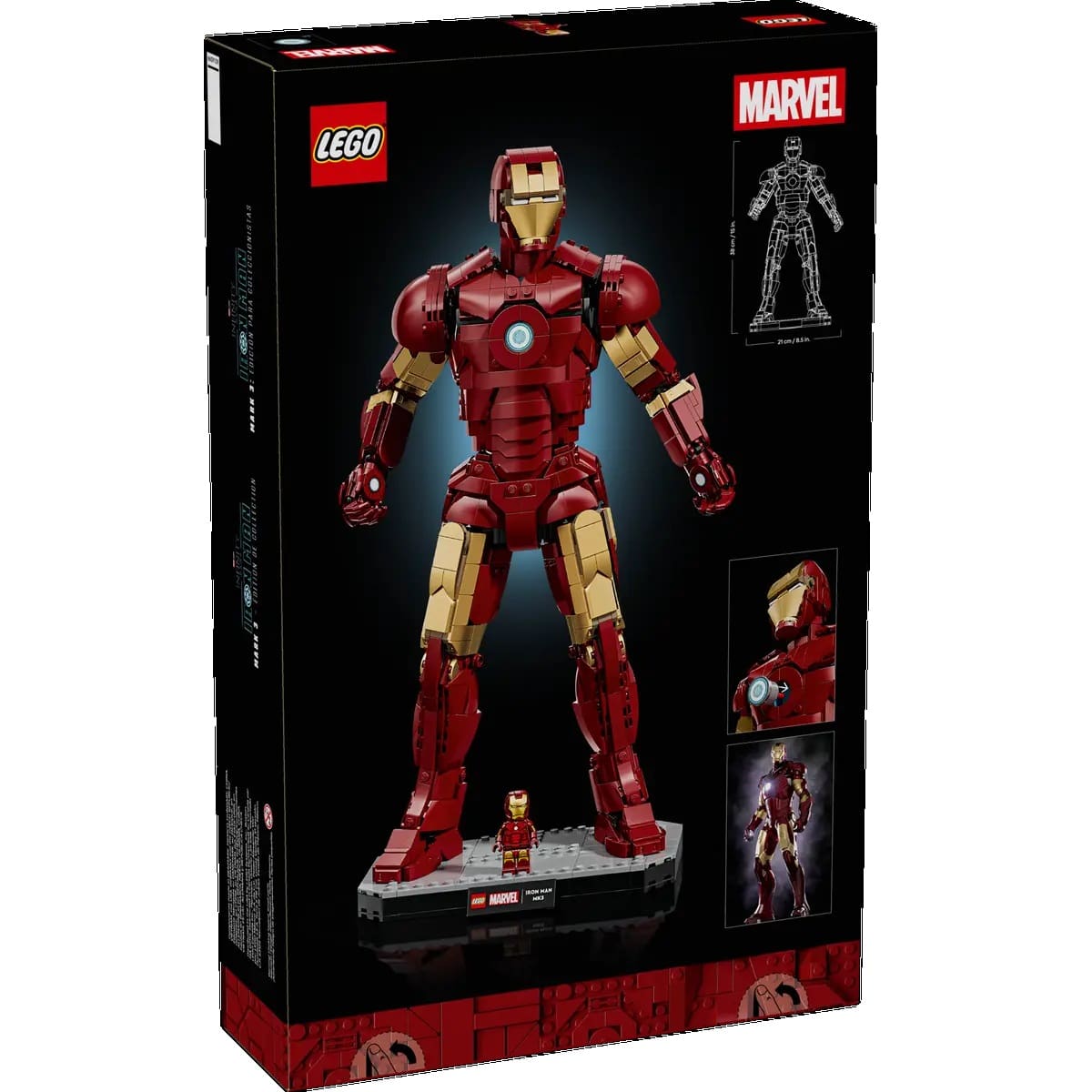• Includes matching Iron Man Mark 3 minifigure