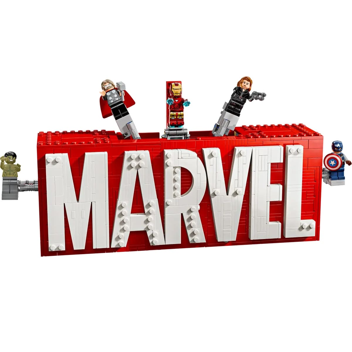- 931-piece MARVEL logo set – In its closed position, the Marvel model measures over 4 in. (11 cm) high, 11 in. (28 cm) wide and 2.5 in. (7 cm) deep