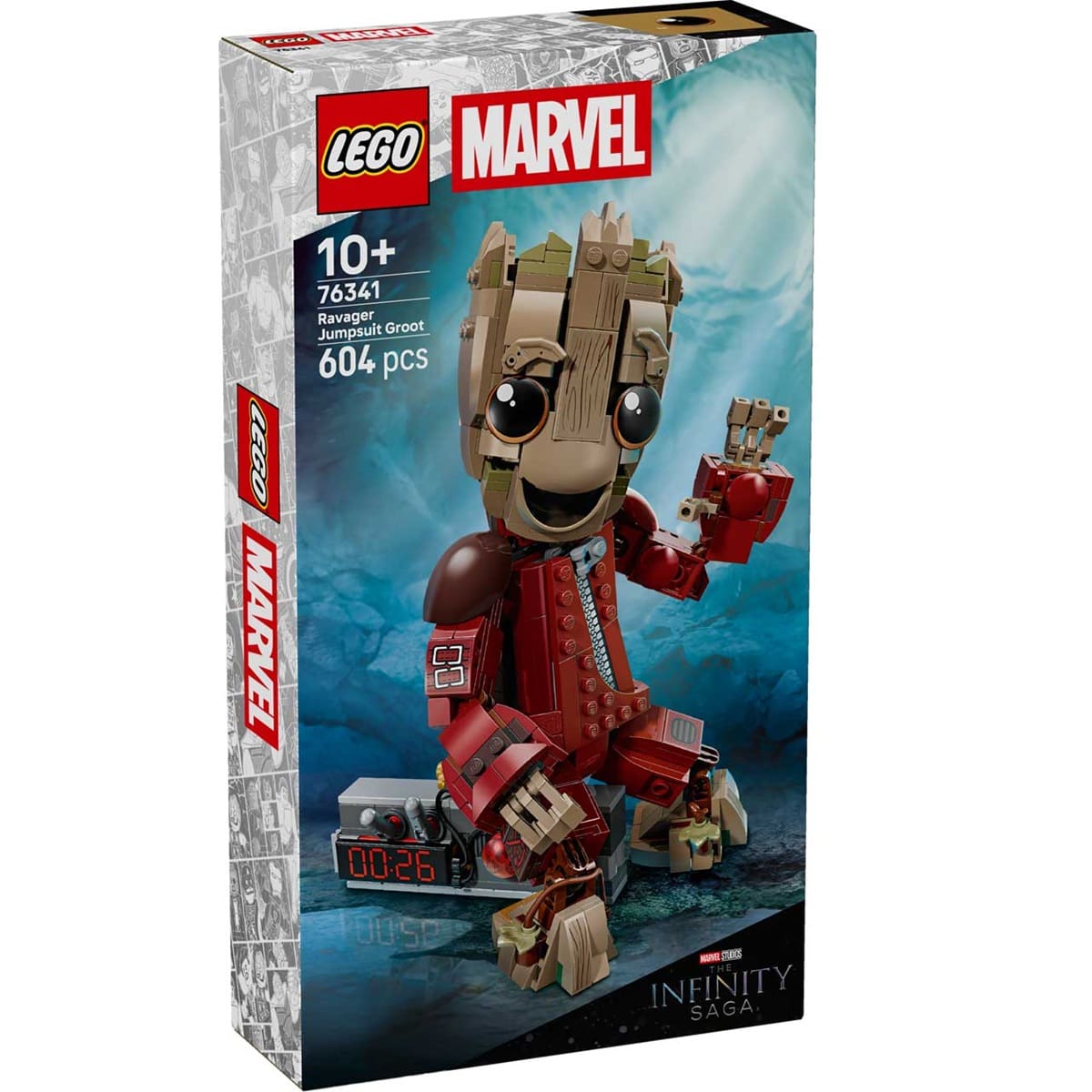 Bring Baby Groot to life with this highly posable Marvel – Ravager Jumpsuit Groot build, perfect for kids aged 10 and up who love character models and Super Hero adventures. This detailed figure captures Groot in the Ravager outfit seen in Guardians of the Galaxy Vol. 2, complete with expressive eyebrows, fully articulated limbs and fingers, and a buildable detonator featuring buttons and levers inspired by the film’s unforgettable scene. With 604 pieces, it offers an engaging build and plenty of opportunities for play and display.
