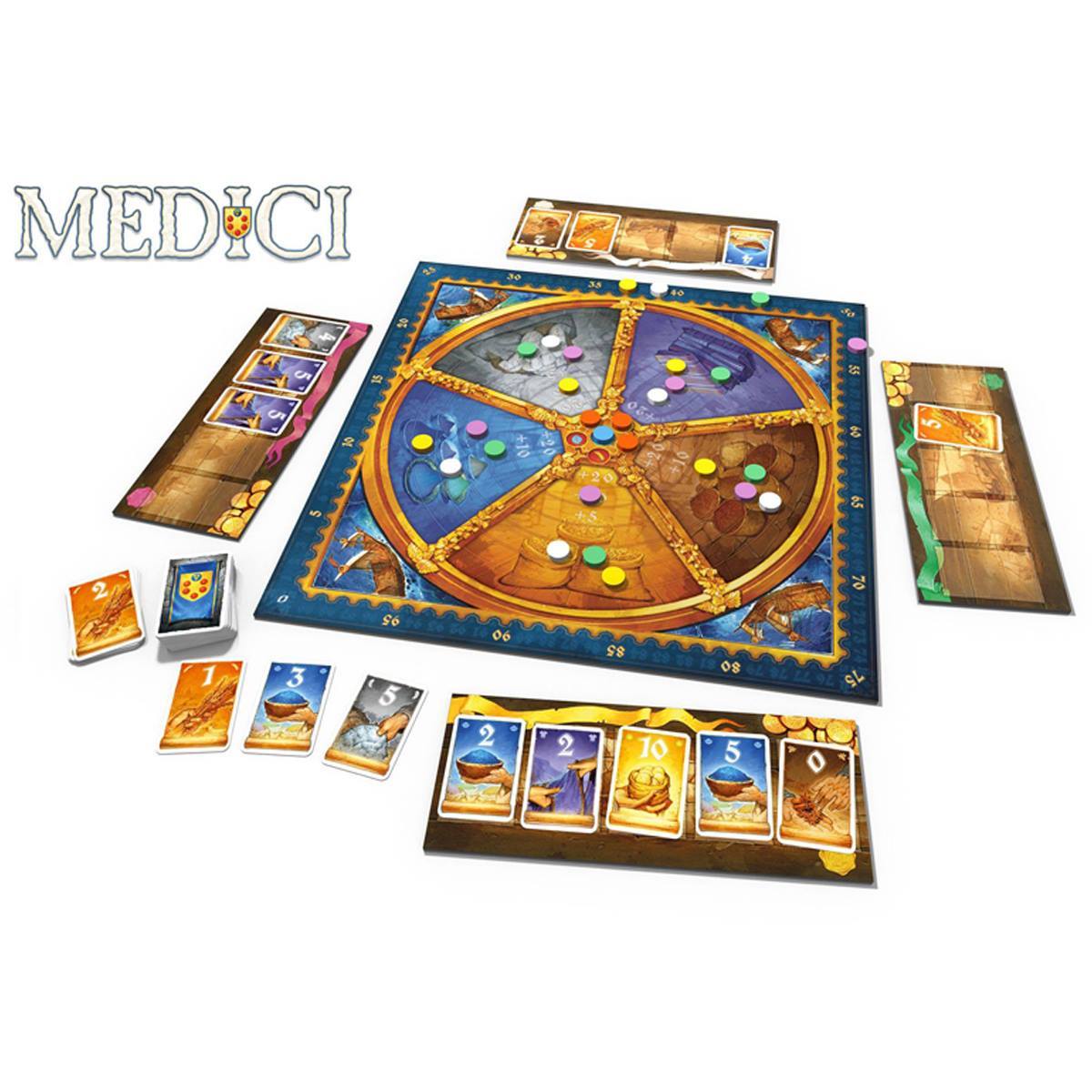 Another Reiner Knizia standby, this game plays very well with varying numbers of people. The object is to accrue the most points during three rounds, which you do by spending your points to bid on sets of cards. Each turn the current player turns up one to three cards for all the players to bid on, with the highest bid taking all cards. The cards denote a commodity type and quantity/value. The round ends when each player’s ships are full, or the commodity card deck is exhausted. After each round, points are awarded to each player having the most of a given commodity, and to the one with the most valuable total “cargo load”.