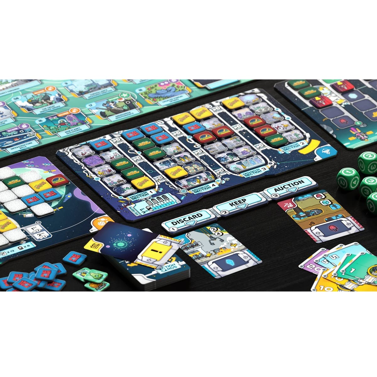 As you play, you’ll manipulate the market, engage in intergalactic mini-games, and resolve various events that will impact your strategy. The player with the most money at the end of the game emerges victorious!