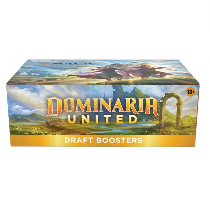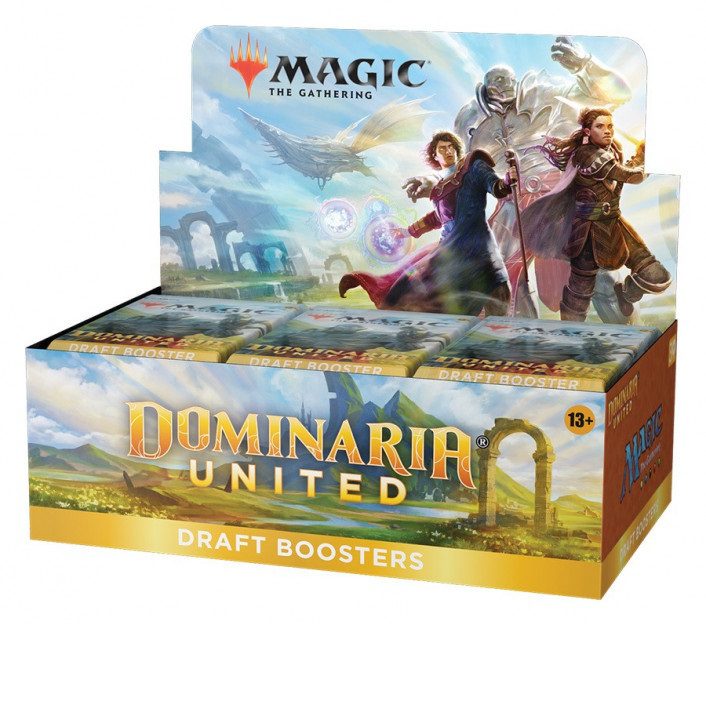 Each Dominaria United Draft Booster contains 15 cards and 1 token/ad card, including a combination of 1 card of rarity Rare or higher and 3 Uncommon, 10 Common, and 1 Land cards. Traditional Foil Borderless Mythic Rare Planeswalker in <1% of boosters. Traditional Foil of any rarity replaces a Common in 33% of boosters. Contents: - 36 Dominaria United MTG Draft Boosters + 1 foil Box Topper card - Best boosters for drafting Dominaria United - 15 Magic cards per booster - 1 Legendary Creature in every pack - 1 Traditional Foil card in 33% of packs - Return to Magic’s home plane in a set full of your favourite MTG legends and heroes Booster Box Configuration: 36 booster packs / 15 cards per pack