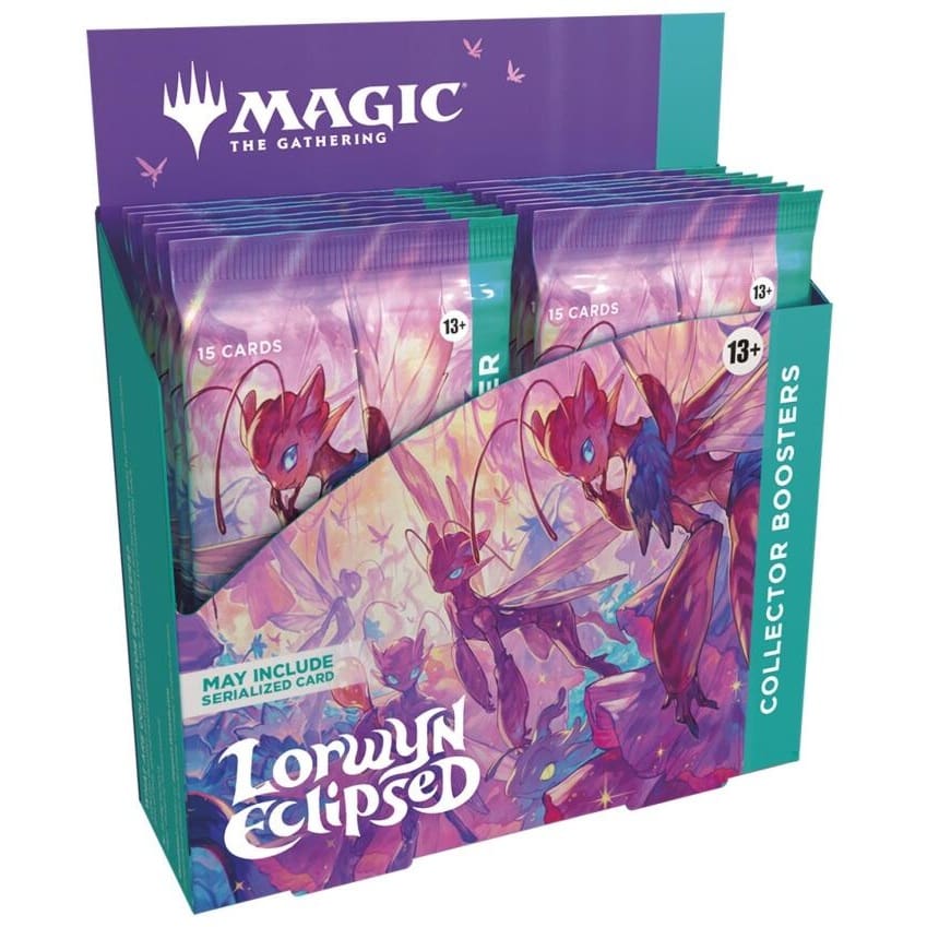 Return to the dual‑aspect plane of Lorwyn and Shadowmoor with a sealed display of 12 Lorwyn Eclipsed Collector Boosters — the premium product for collectors and art hunters. This factory‑sealed box is ideal for high‑end openings, prize support, or stocking up with the best chase content from the set: full‑art lands, alternate showcase treatments, serialized headliners and a heavy foil density.