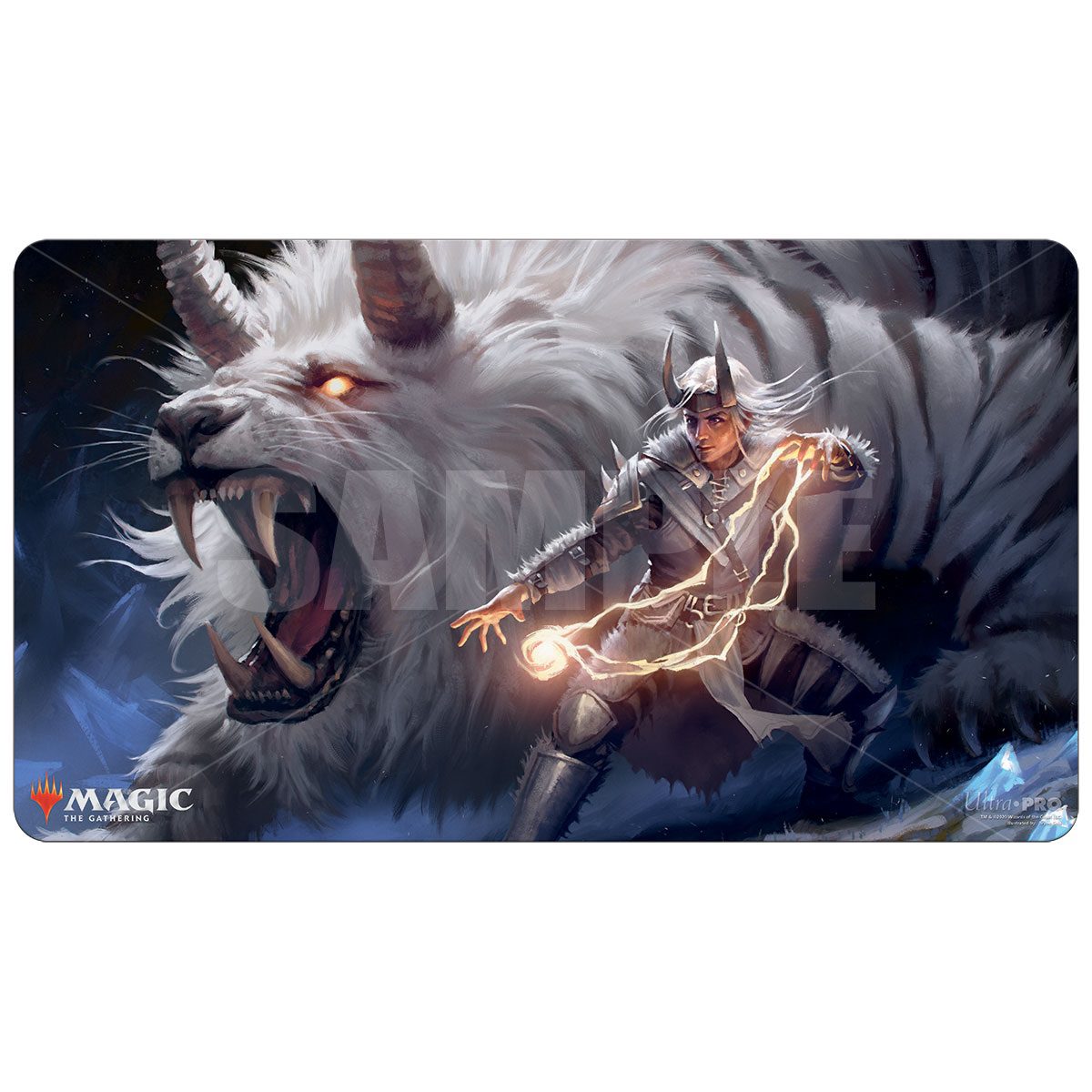 Up your game at your next game night with these official Magic: The Gathering playmats showcasing highly detailed and vibrant artwork from popular trading card game. Made with a premium fabric top to prevent damage to cards during game play for tabletop gamers. With dimensions of approximately 24″ X 13-1/2″, this playmat is also the perfect decorative over sized mouse pad for computer and laptop workstations. Non-slip rubber backing lets the playmat lay flat and prevents it from shifting during use.