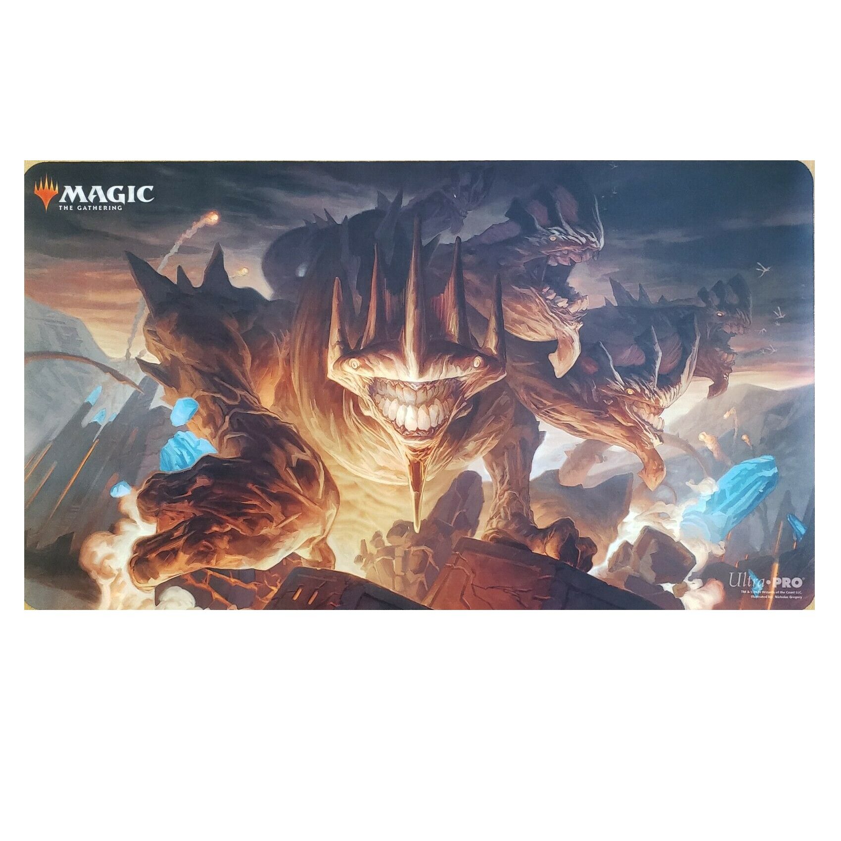 Playmat with premium fabric top to prevent damage to cards during game play. Dimensions are approximately 24″ X 13-1/2″. Rubber backing lets the playmat lay flat and prevents the mat from shifting during use.