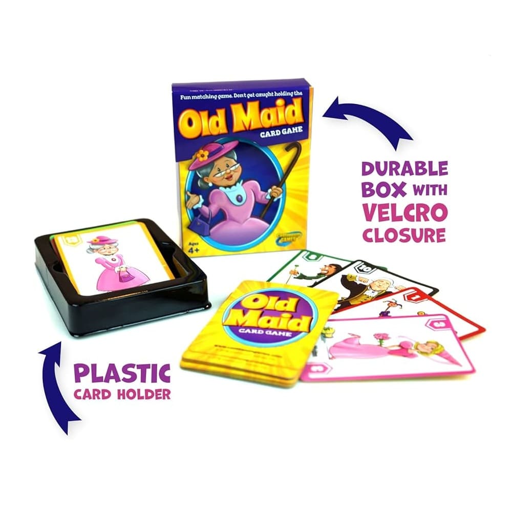 Discover the timeless fun of Old Maid, the classic children’s card game filled with friendly characters—including the mischievous Old Maid herself! This game is perfect for teaching young players the fundamentals of card play, including holding cards, shuffling, dealing, taking turns, and more. Along the way, kids will also practice picture and color matching, as well as number recognition, making it both entertaining and educational.