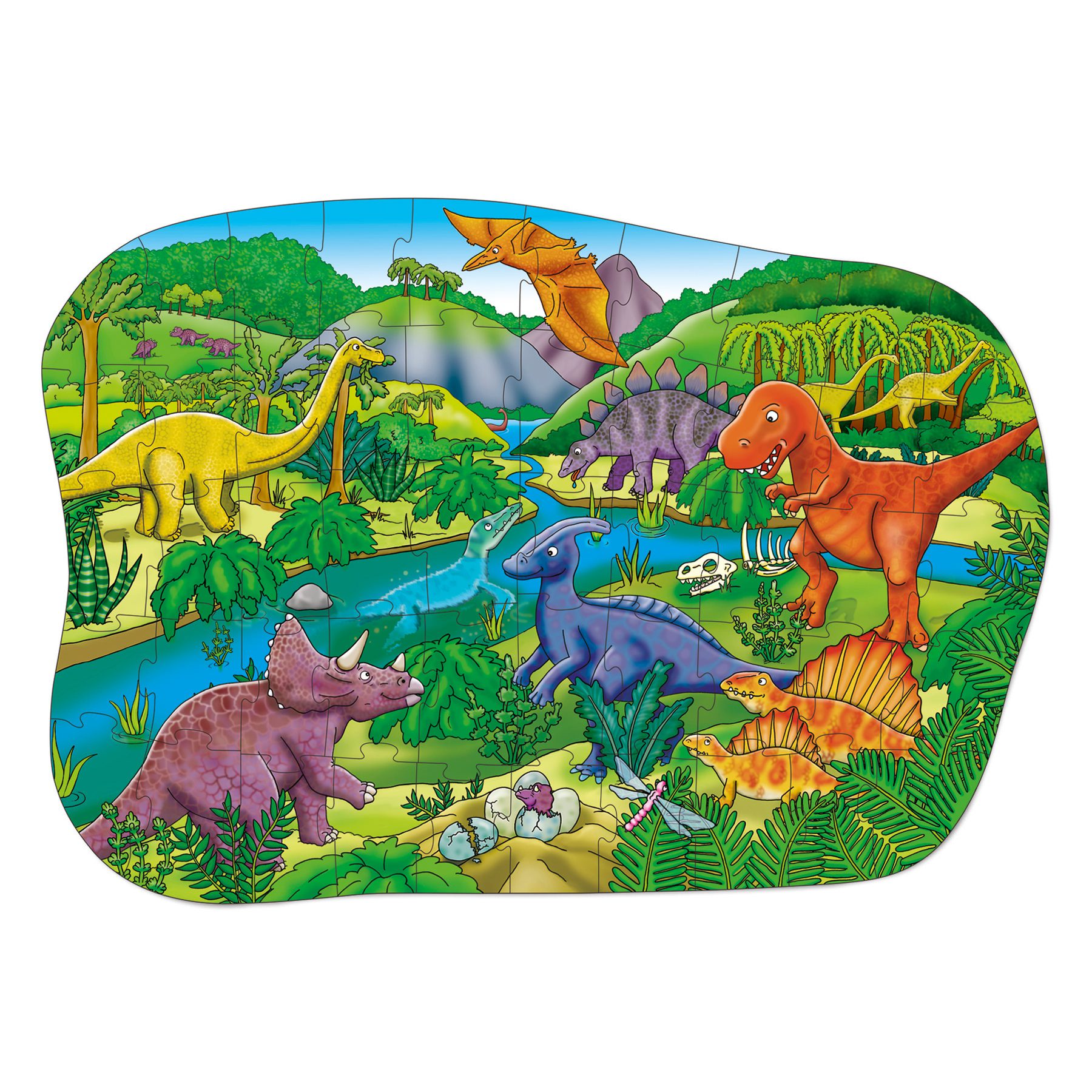 This beautifully illustrated jigsaw depicts a wide array of dinosaurs, from a triceratops to a t-rex, in a lush, prehistoric setting.