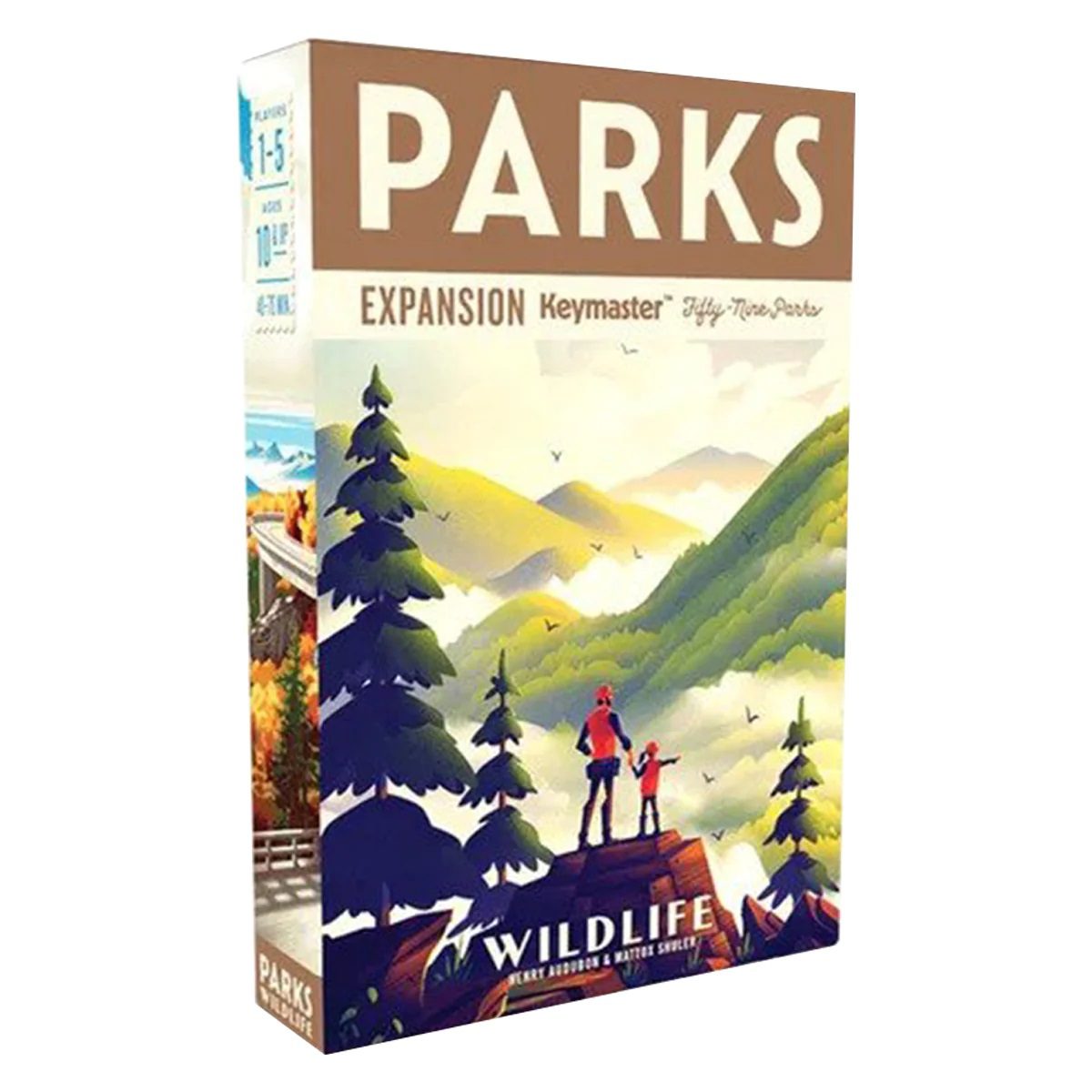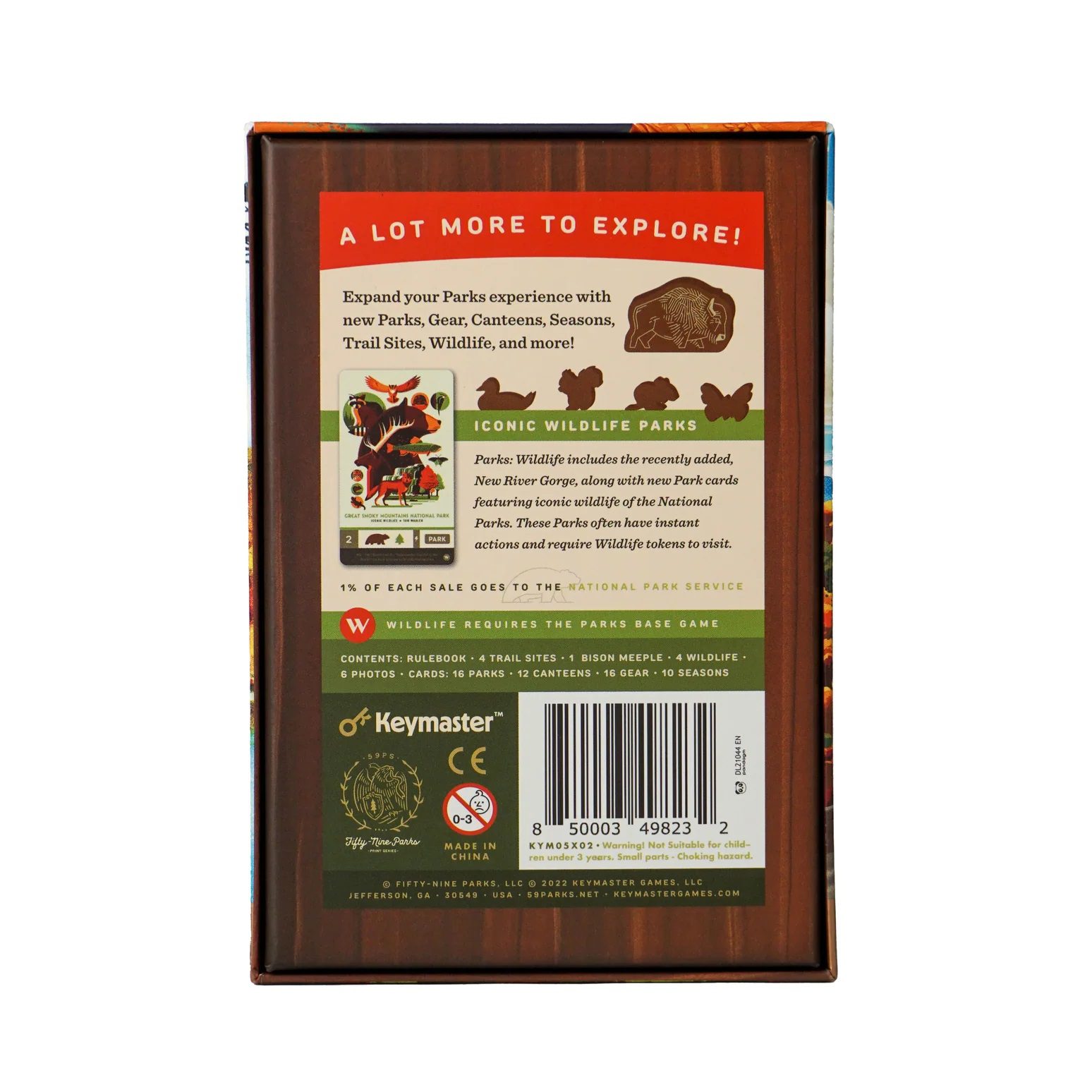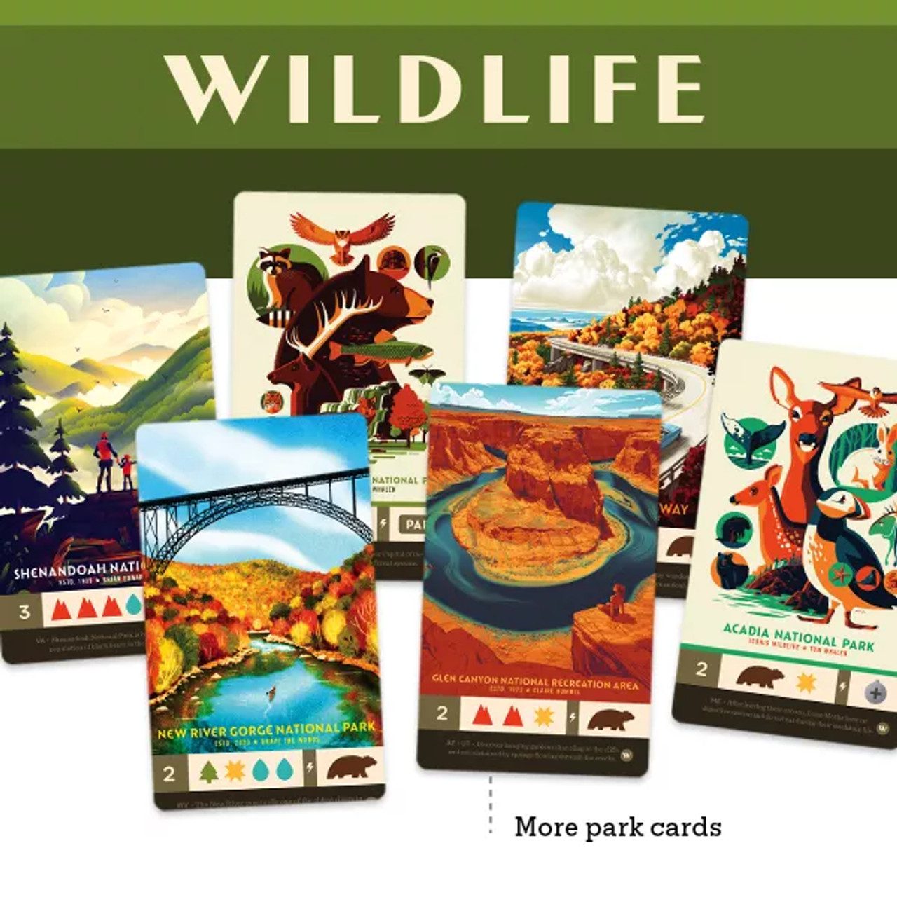 Expand the award-winning game Parks with Parks: Wildlife! Grab your binoculars and prepare for even more animal sightings at Iconic Wildlife Parks, featuring all-new artwork from Tom Whalen and the Fifty-Nine Parks Print Series, and the newest national park addition, New River Gorge. This expansion is the MORE expansion. Get ready for new trail sites, fresh canteens, new gear, and more season cards.