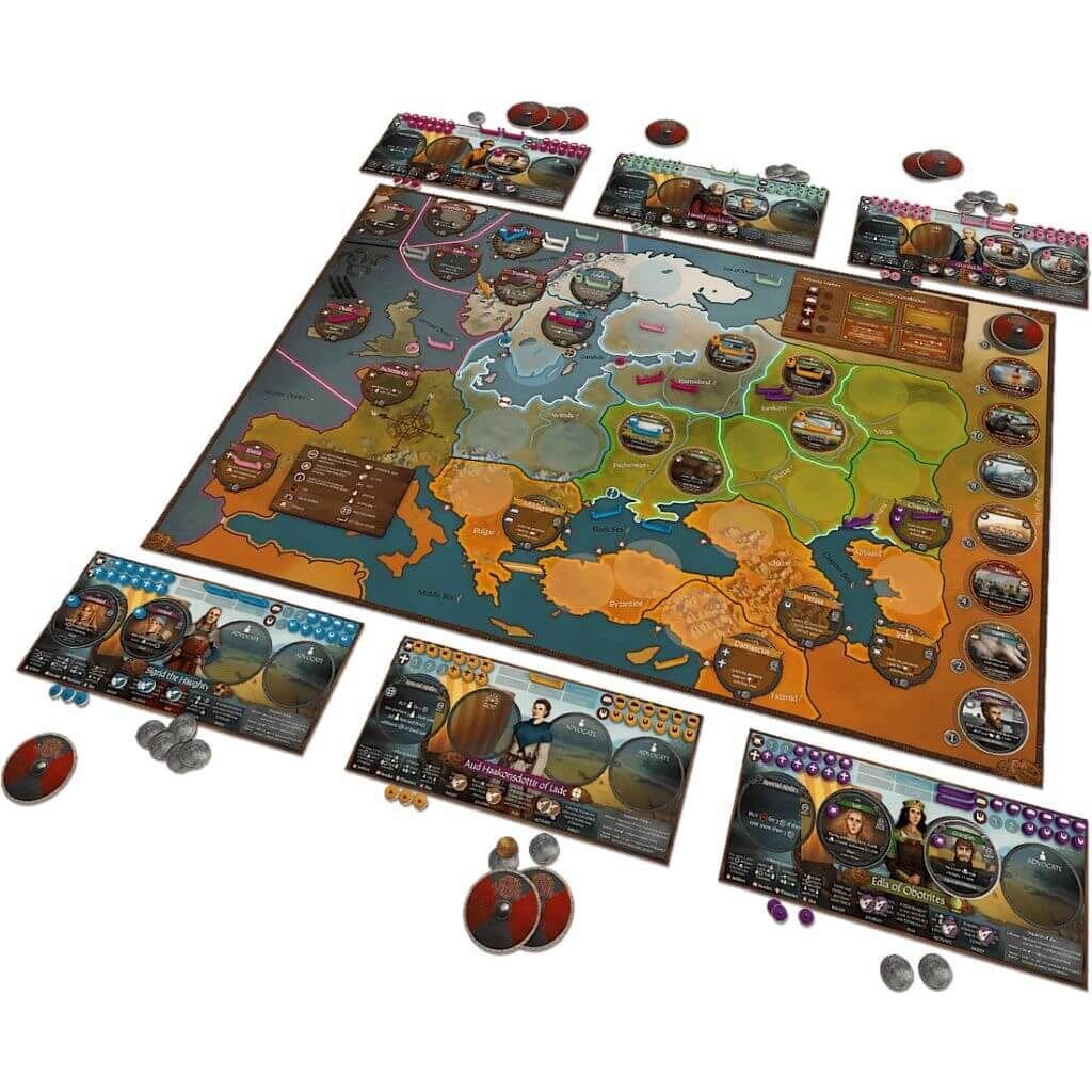 Pax Viking is a historical strategy game of trade and diplomacy in the 10th century for 1-6 players. The game highlights those Vikings who travelled eastwards, towards the rich trade routes of Persia and around the Black Sea. Skilled opportunists in the matters of silver and axe, these Vikings are ready to wield whichever worked best in any given situation. They shared an adventurous explorer ethos with the westward travelling Vikings, and reached far to the south and east, forming strong alliances, influencing societies, and founding empires along their way.