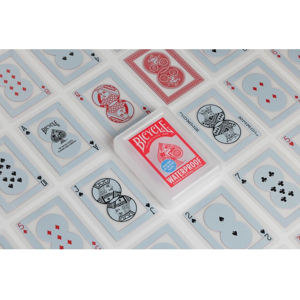 Bicycle Waterproof blends retro class and modern technology. Made from 30% recycled plastics, this durable deck of cards has a hard outer clam‐shell case that keeps cards secure and easily rinseable if dirty, sandy or sticky. Bicycle Waterproof is the perfect companion for your next pool party, beach trip, and anywhere else our signature paper cards just won’t make the cut.