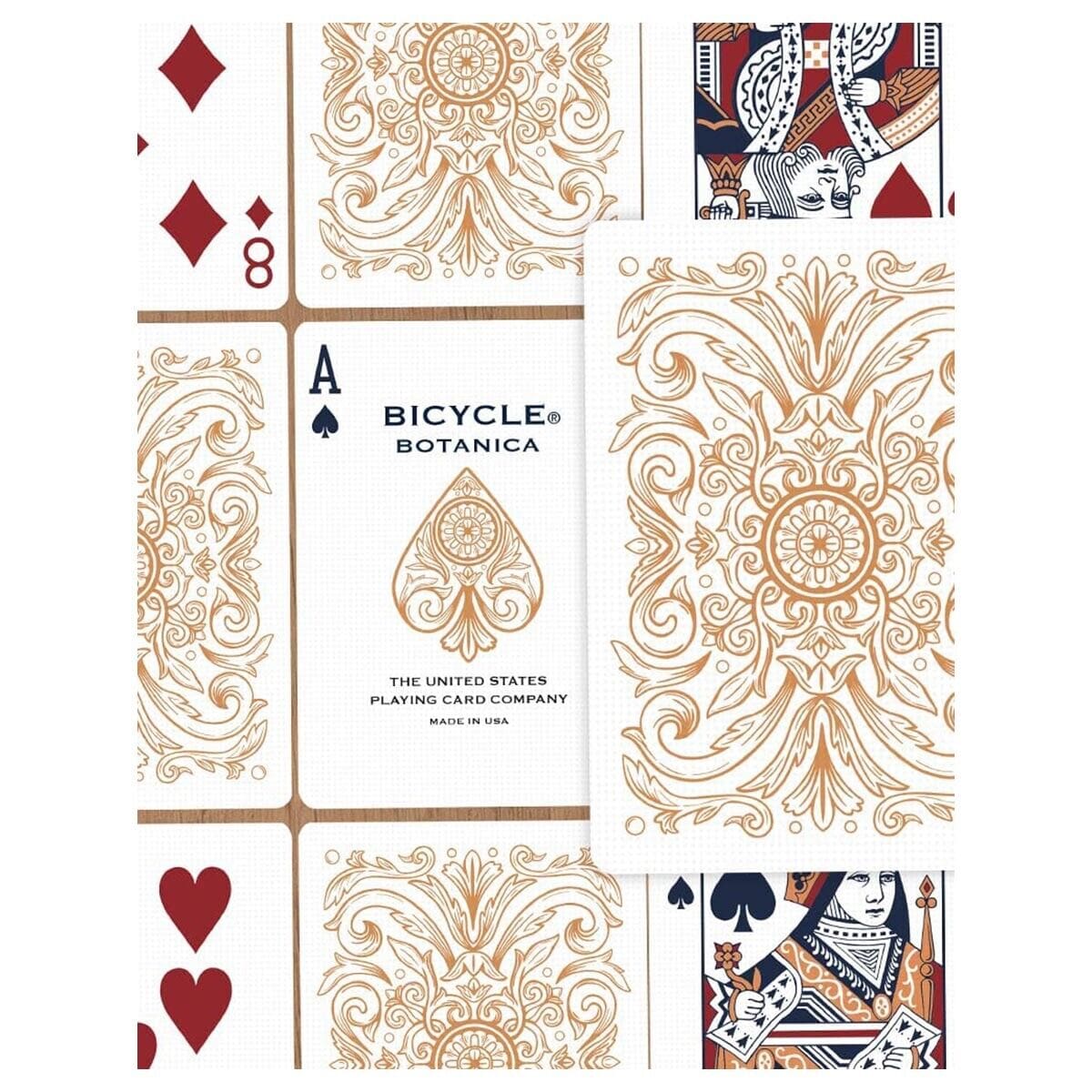 Botanica from Bicycle Playing Cards features a beautifully rich copper foil to accentuate the botanical-themed design with a timeless aesthetic. This unique playing card takes inspiration from the elegant, natural shapes found in a blossoming garden.