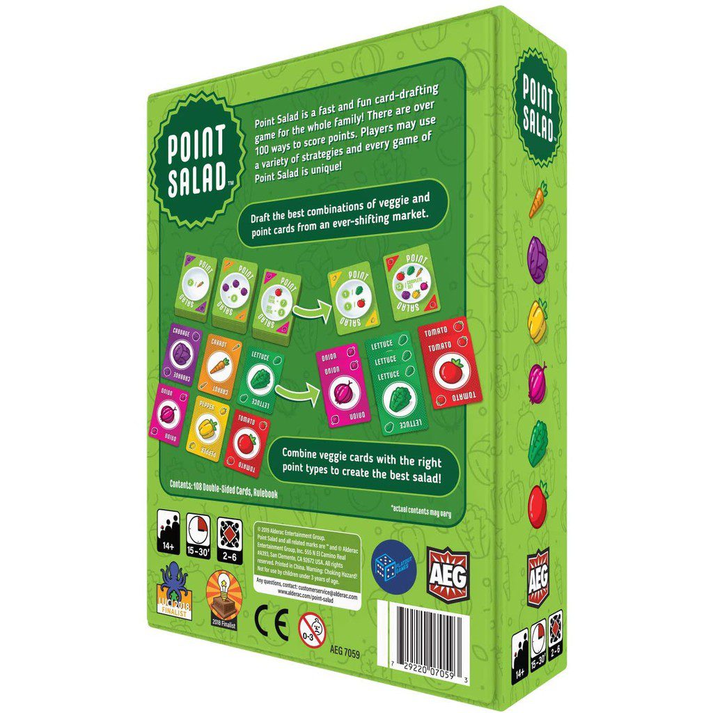 Point Salad is a fast and fun card drafting game for the whole family. There are over 100 ways to score points. Players may use a variety of strategies and every game of Point Salad is unique!