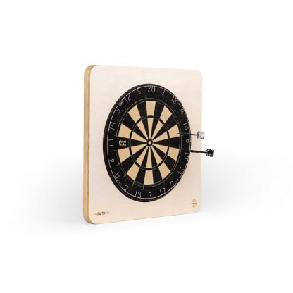 Our premium darts set has a chunky dart board made from professional grade sisal bristle and featuring a slim blade wire number ring and highly visible segments set in a solid birch plywood surround. Each set comes with six premium 24g darts in black brass.