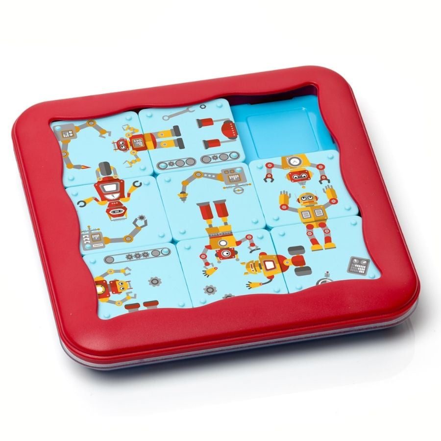 The object of the game is to slide the puzzle pieces around until all robot parts are assembled into complete robots.