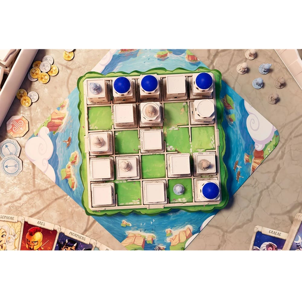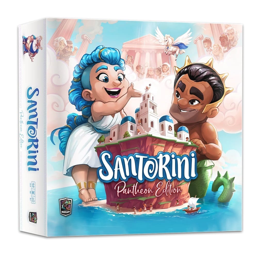 Experience the timeless elegance and strategic depth of Santorini Pantheon Edition, a beautifully crafted abstract game where you take on the role of a youthful Greek God or Goddess vying to help citizens build their idyllic island village in the heart of the Aegean Sea. Combining simple rules with engaging gameplay, this edition elevates the experience with stunning components and innovative mechanics.