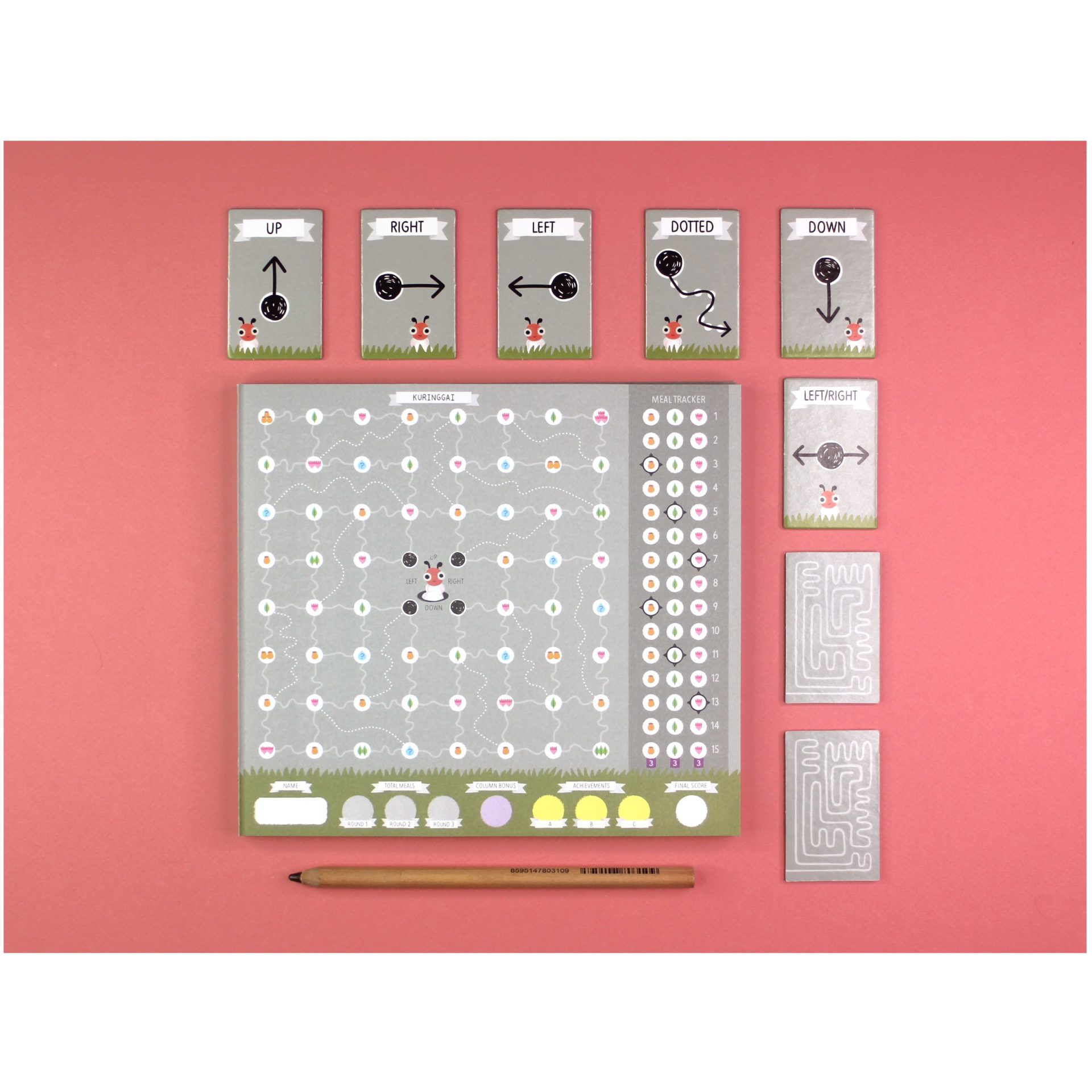 Did you know Australia’s Scribbly Gum trees get their beautiful scribbles from baby moths burrowing through the bark? In this game, each player has their own tree diagram and every turn gets to draw a line that leads to food for your baby moth to eat. Collect sets of food to score points. Whoever scribbles their way to the most valuable food wins the game! Scribbly Gum can be played with any number of players at once and includes directions for classroom play.