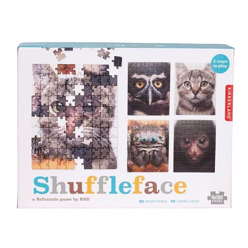 Puzzle game – includes 4 × 100pcs puzzles mix the pieces together to create 1 big puzzle with weird faces/animals