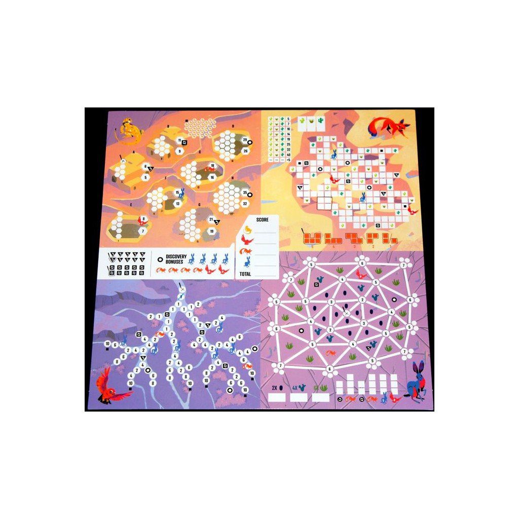 You have entered the Sonoran Desert, a place of vast beauty. Technicolor sunsets pop out over vistas revealing deep canyons, trickling tributaries, and ancient pueblo cliff dwellings. Immerse yourself in the secrets of the desert in a flick-and-write game in which cunning and dexterity meet.