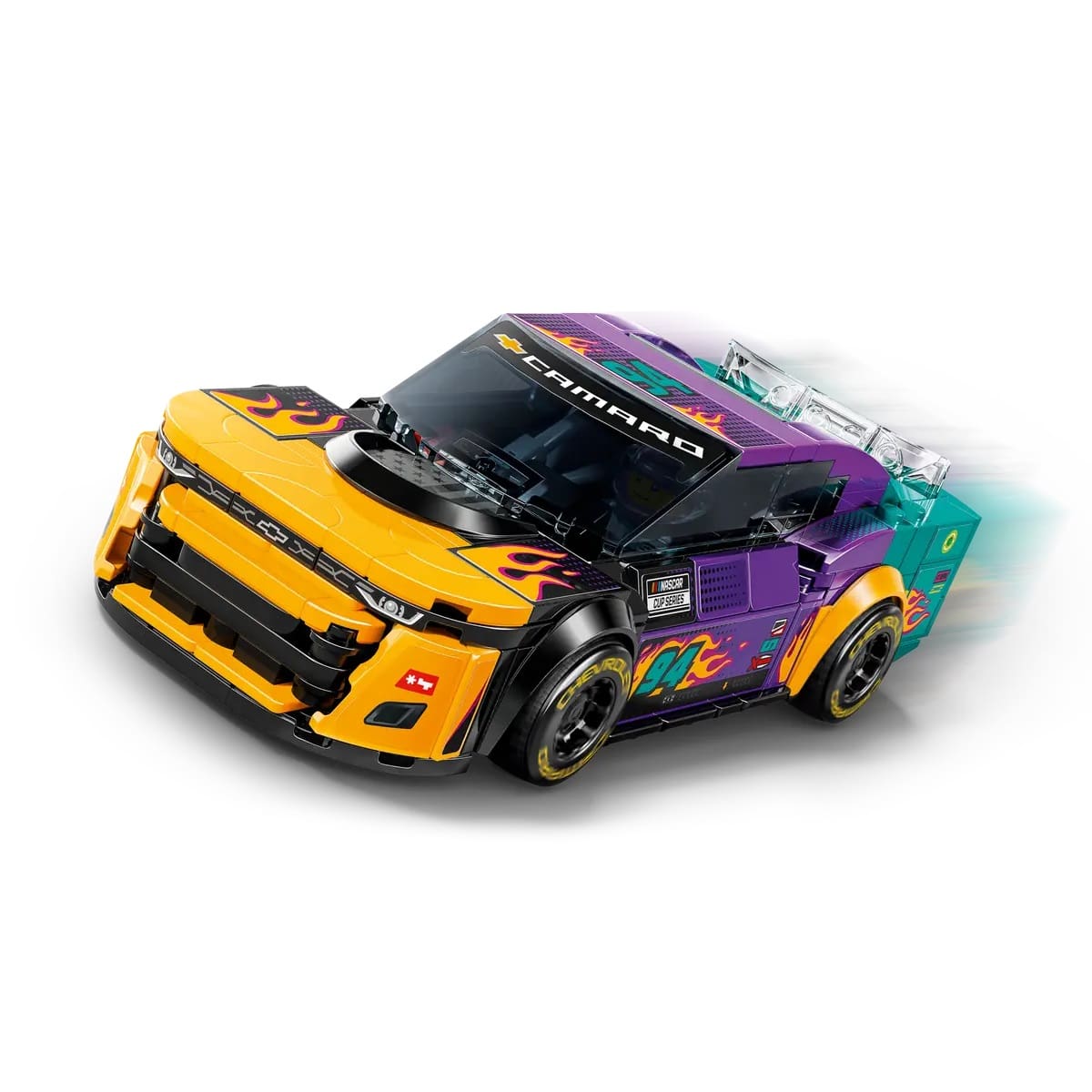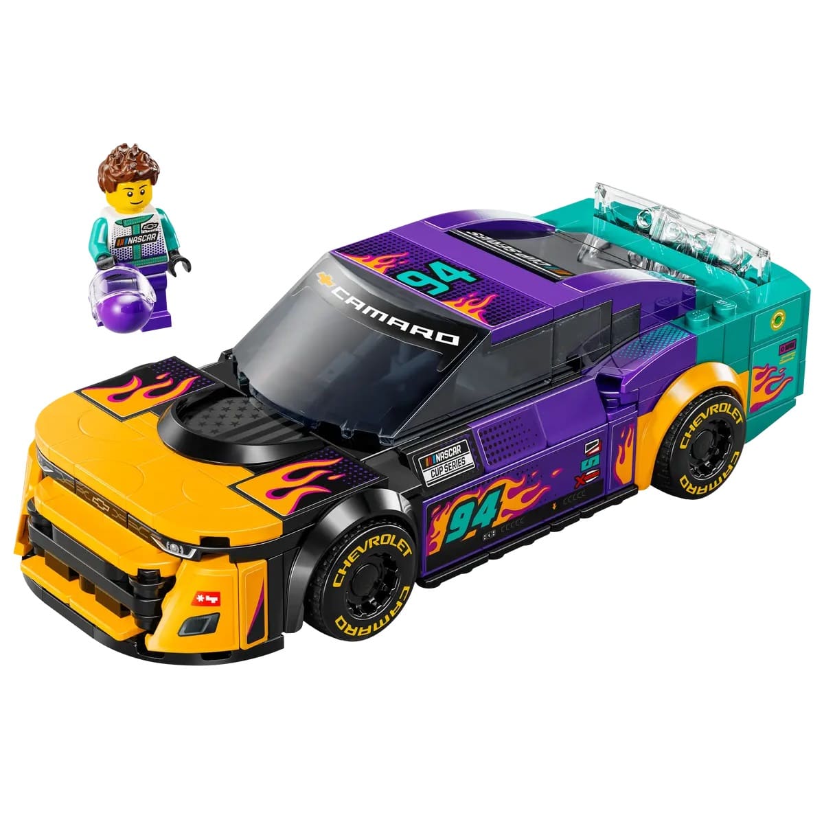 Boys and girls aged 9+ and NASCAR® fans can collect, build, play with and display this LEGO® Speed Champions NASCAR Next Gen Chevrolet Camaro ZL1 (76935) toy car for kids. This powerful race car decorated in vibrant colors and flames includes design details from real-life cars that race in the NASCAR Cup Series.