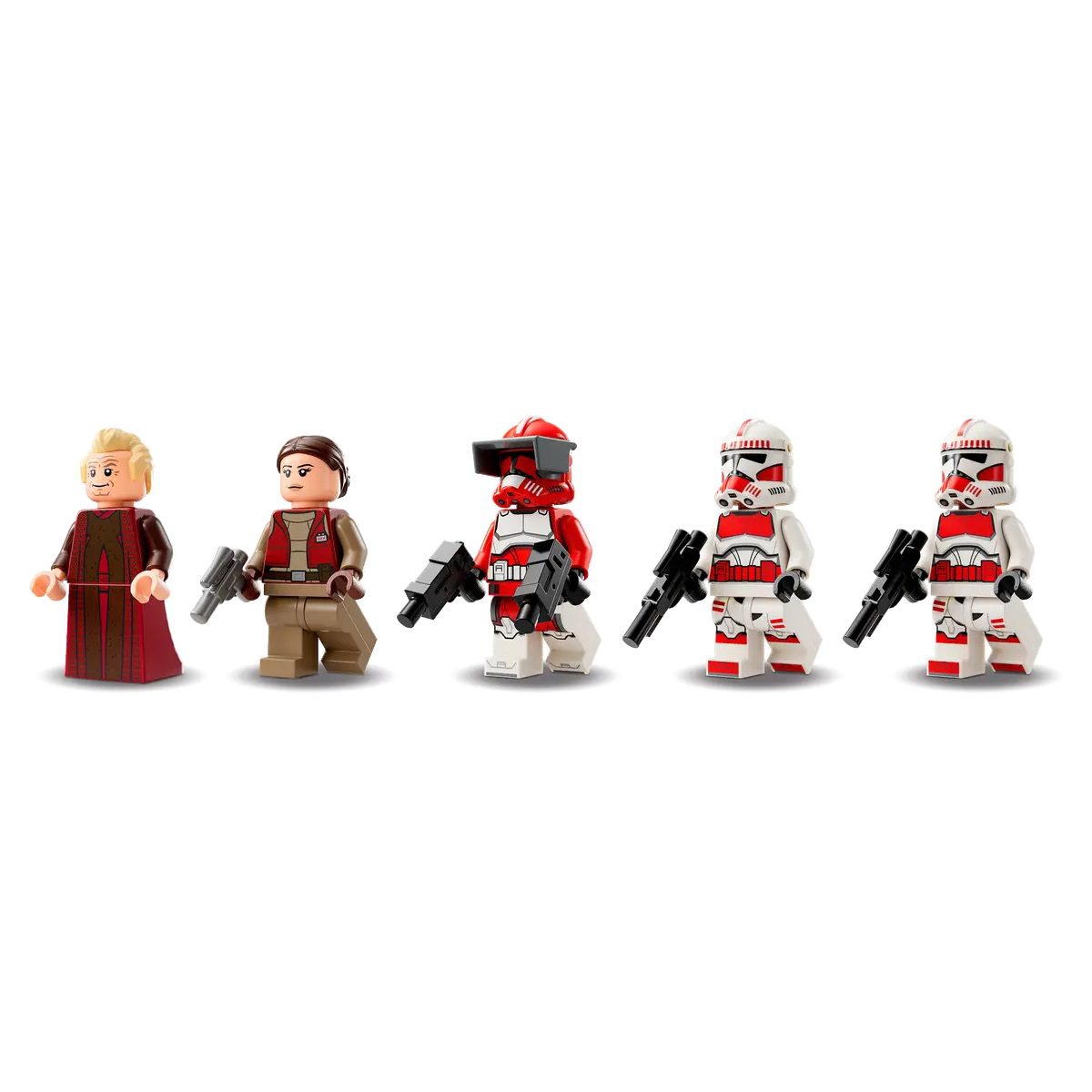 - 5 LEGO® minifigures of Star Wars™ characters – Chancellor Palpatine, Commander Fox with 2 blaster pistols, 2 Coruscant Guards, each with blasters, and Padmé Amidala with a blaster pistol
