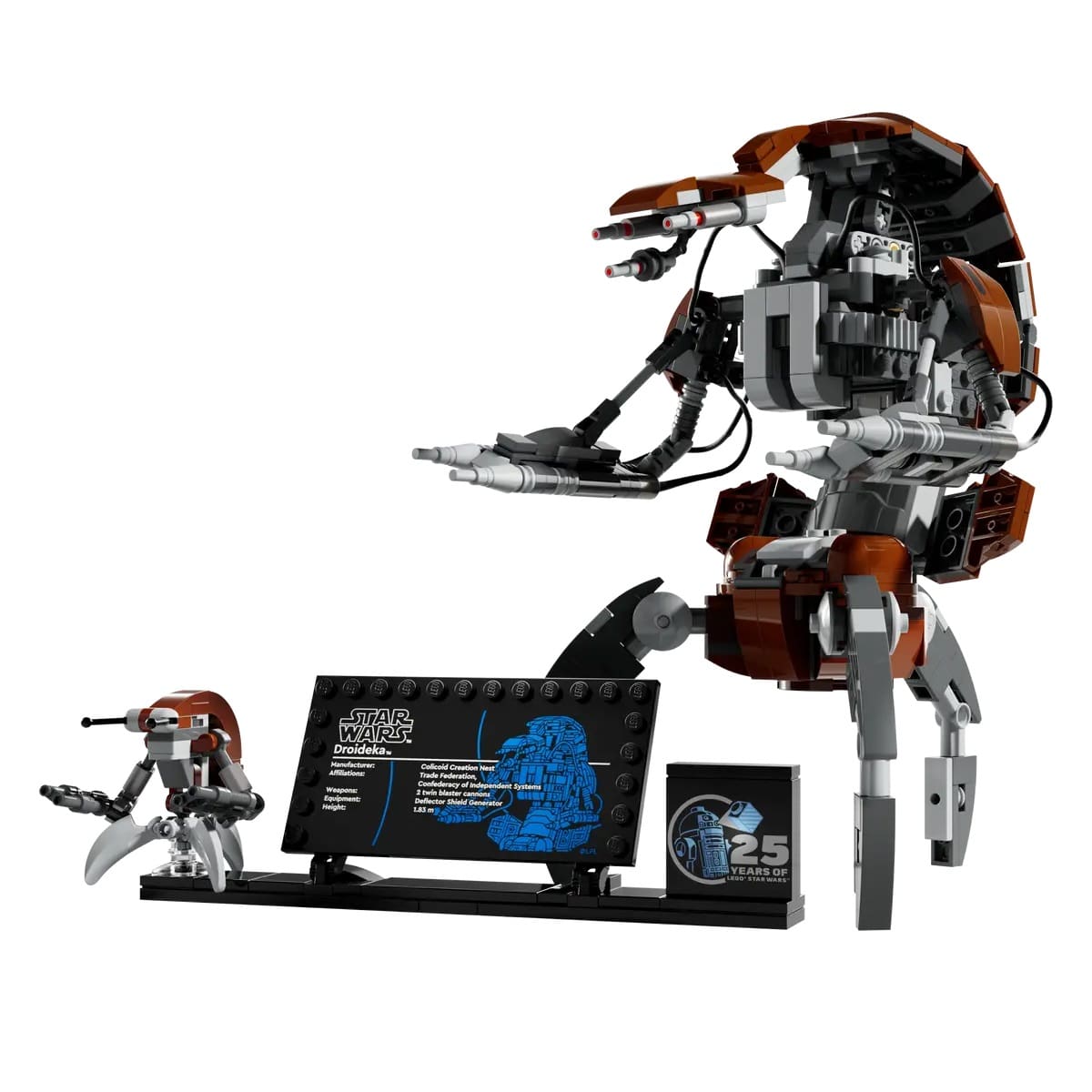 - 25th anniversary centerpiece – This unique set includes a stand with space for the small LEGO® droid figure of a Droideka, a Droideka information plaque and a LEGO Star Wars™ 25th anniversary brick