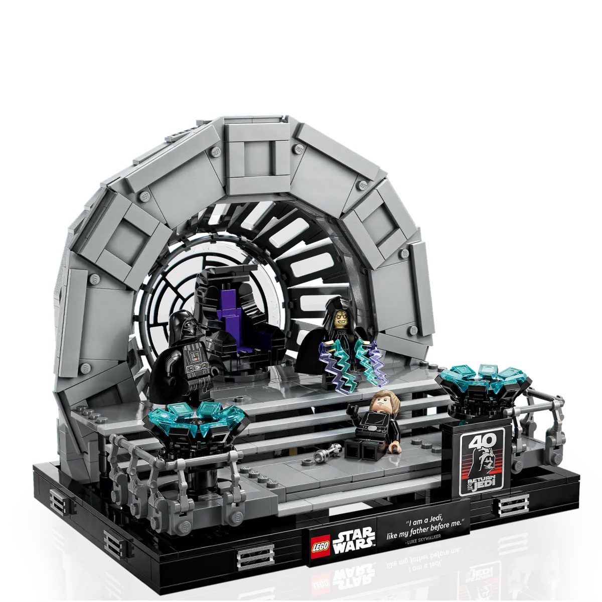 Relive the dramatic climax of the classic Star Wars™ trilogy with this Emperor’s Throne Room Diorama (75352). It is packed with authentic details, including a Death Star window element designed especially for this set and Emperor Palpatine’s rotating throne. Capture the action with Darth Vader and Luke Skywalker LEGO® minifigures, each with lightsabers, and Emperor Palpatine with 2 Sith lightning bolt elements. This build-and-display model is completed with a plaque featuring a famous Luke line(“I am a Jedi, like my father before me.”) and a plaque with the Star Wars: Return of the Jedi 40th anniversary logo.