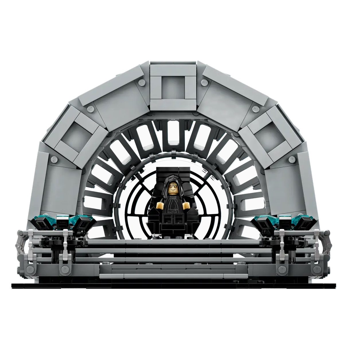 - Authentic details – A circular Death Star window element, rotating throne, 2 display consoles and more. The set also features a plaque marking the 40th anniversary of Star Wars: Return of the Jedi