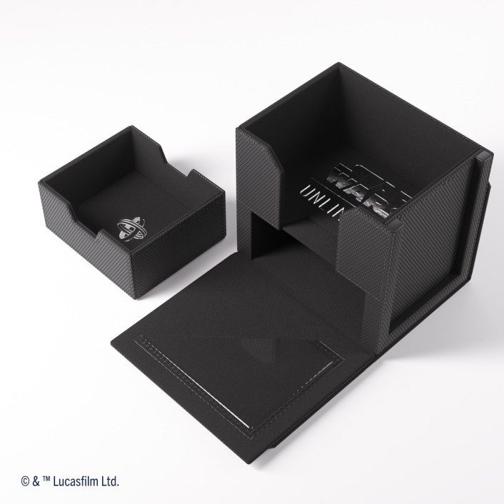 The Deck Pod, an officially licensed premium deck box, is specifically designed for the needs of Star Wars: Unlimited players. UNIQUE FEATURE: The Deck Pod includes a Slide Card Case with additional UV protection for keeping the leader card. Due to the innovative placement of that card, the stored deck can be easily identified without opening the box. The Slide Card Case can also be detached and used during gameplay.