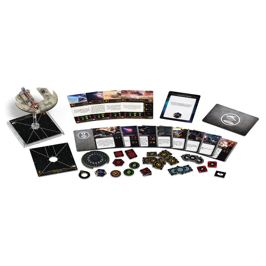 Within the Punishing One Expansion Pack, you’ll find everything you need to add one JumpMaster 5000 to your Scum and Villainy squadrons. Reprints of three pilots join Dengar in the pursuit of profit while twelve reprinted upgrade cards give new players plenty of options for putting a personal touch on their ships. Finally, two Quick Build cards offer useful combinations of pilots and upgrades to maximize your JumpMaster 5000’s effectiveness.