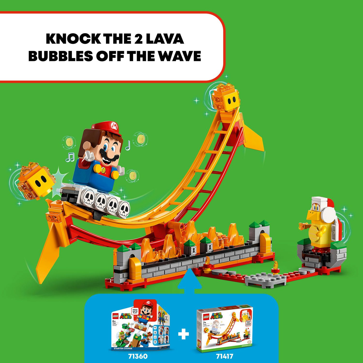 • Ride the lava wave (71416) – Kids can add a fun lava level to their LEGO® Super Mario™ world with this Expansion Set, featuring an oscillating lava wave and Super Mario™ enemy characters