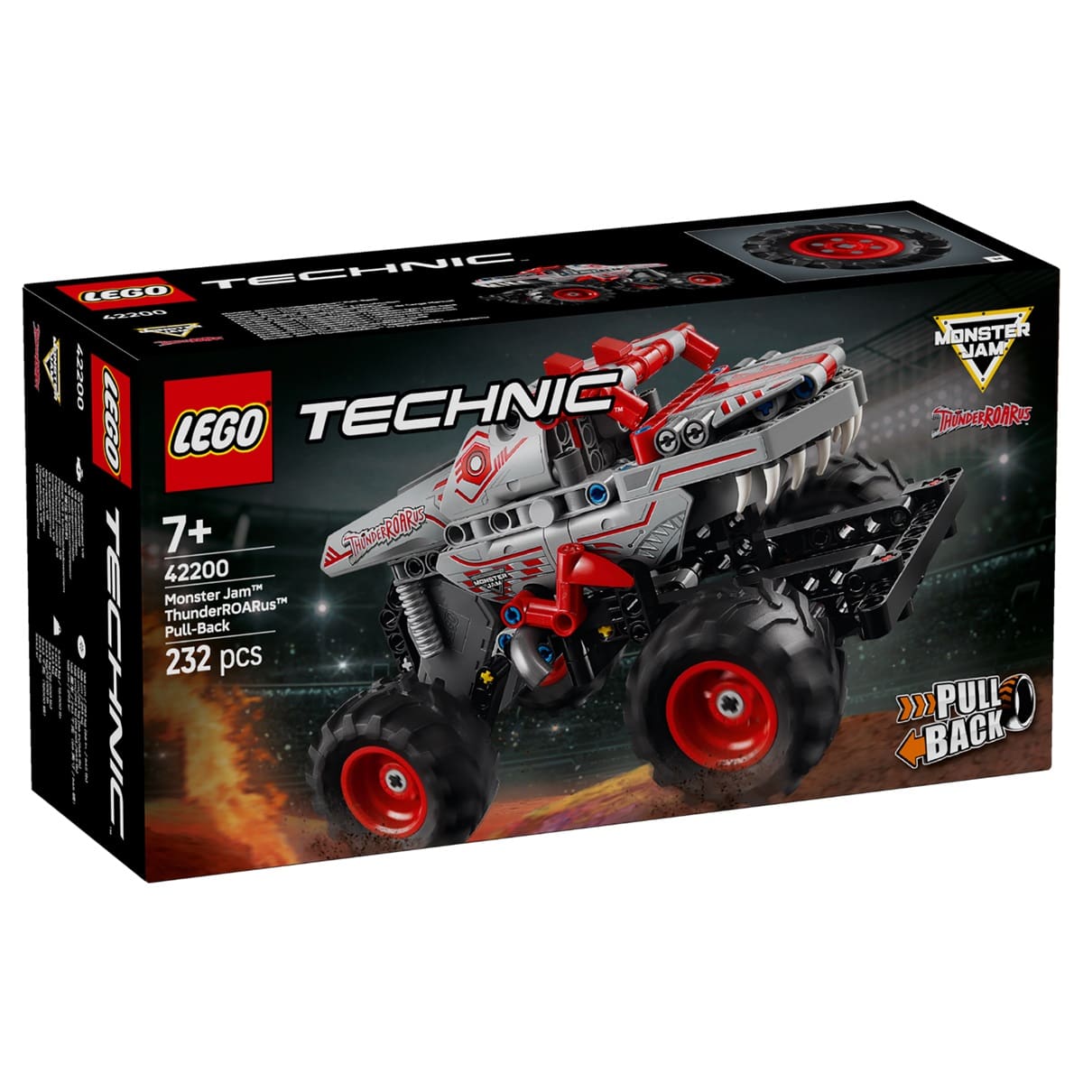 - Pull-back truck for kids aged 7 and up – LEGO® Technic™ Monster Jam™ ThunderROARus™ Pull-Back for girls and boys who love monster truck playsets, vehicles and dinosaur toys