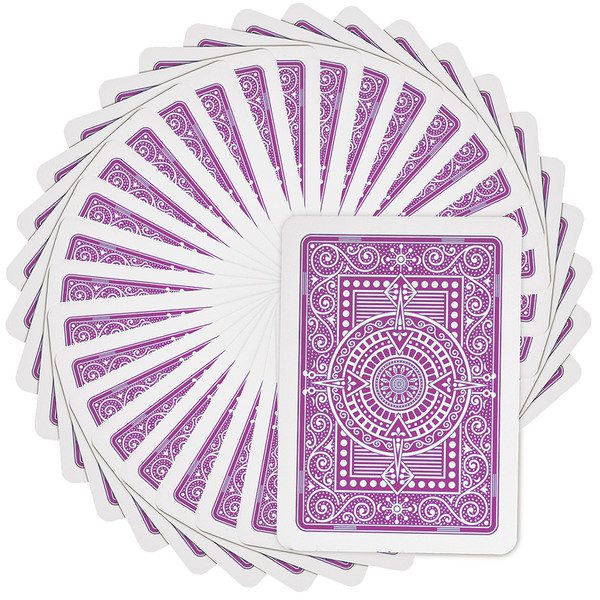 100% plastic poker cards with 2 jumbo index and red or purple back.
