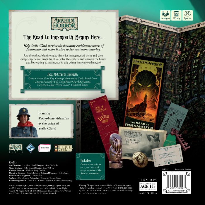 The Road to Innsmouth is an immersive, multimedia puzzle-solving experience that combines collectible artifacts with digital gameplay to tell the story of Stella Clark’s mysterious journey into the heart of Innsmouth.