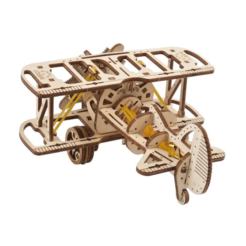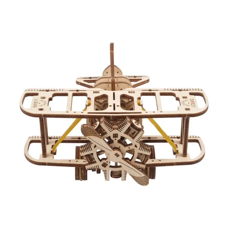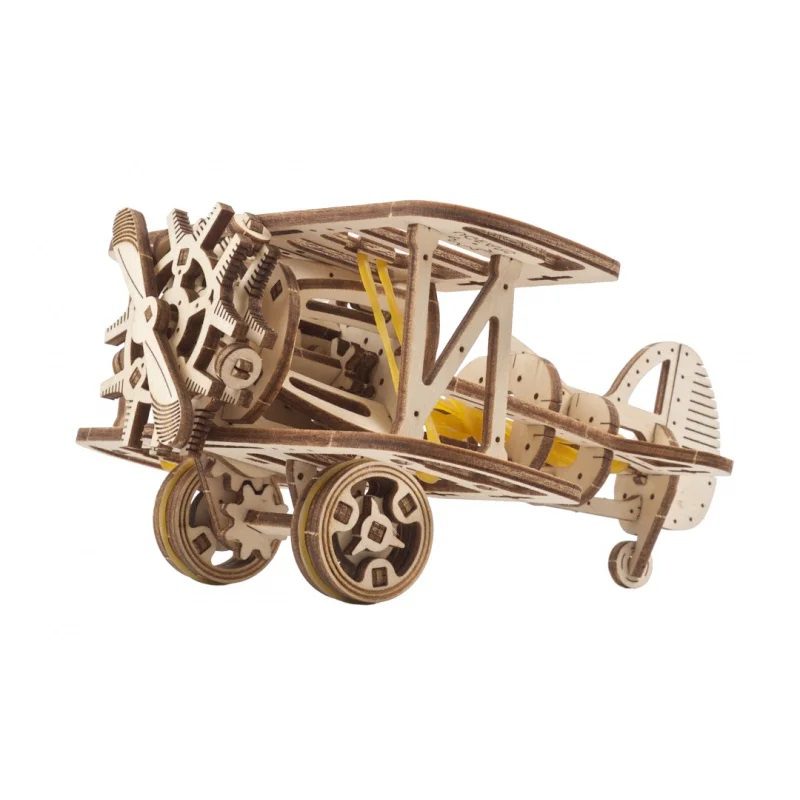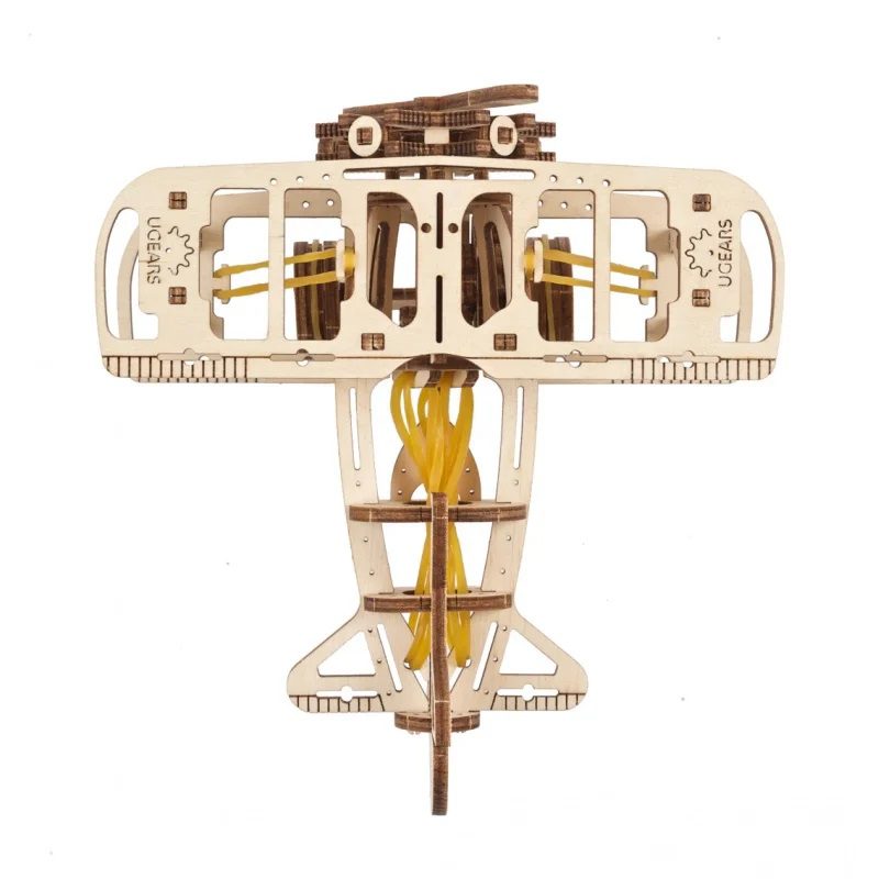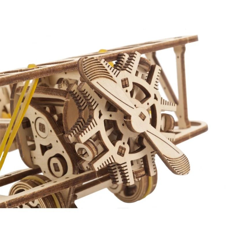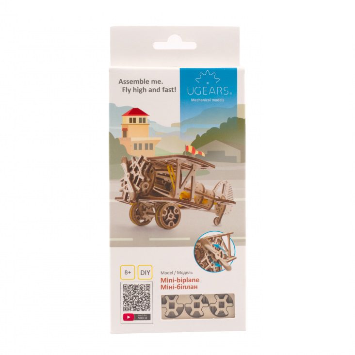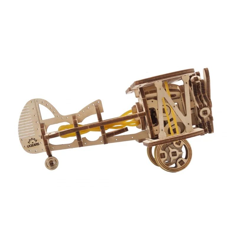Ugears is known for producing beautiful wooden DIY models characterized by a throwback, steampunk sensibility. Naturally, when we decided to add a flyer to our collection of “Easy” models for young modelers, we couldn’t resist the beauty and historical significance of the biplane. The Ugears Mini Biplane model is both a fun toy and an attractive decorative item to place on the shelf. We opted for an open design, making the Biplane fuselage light and transparent, revealing the model’s inner workings. Machines should not be mysteries! We want to encourage our young builders’ natural curiosity, and help them learn about motors and simple mechanics.