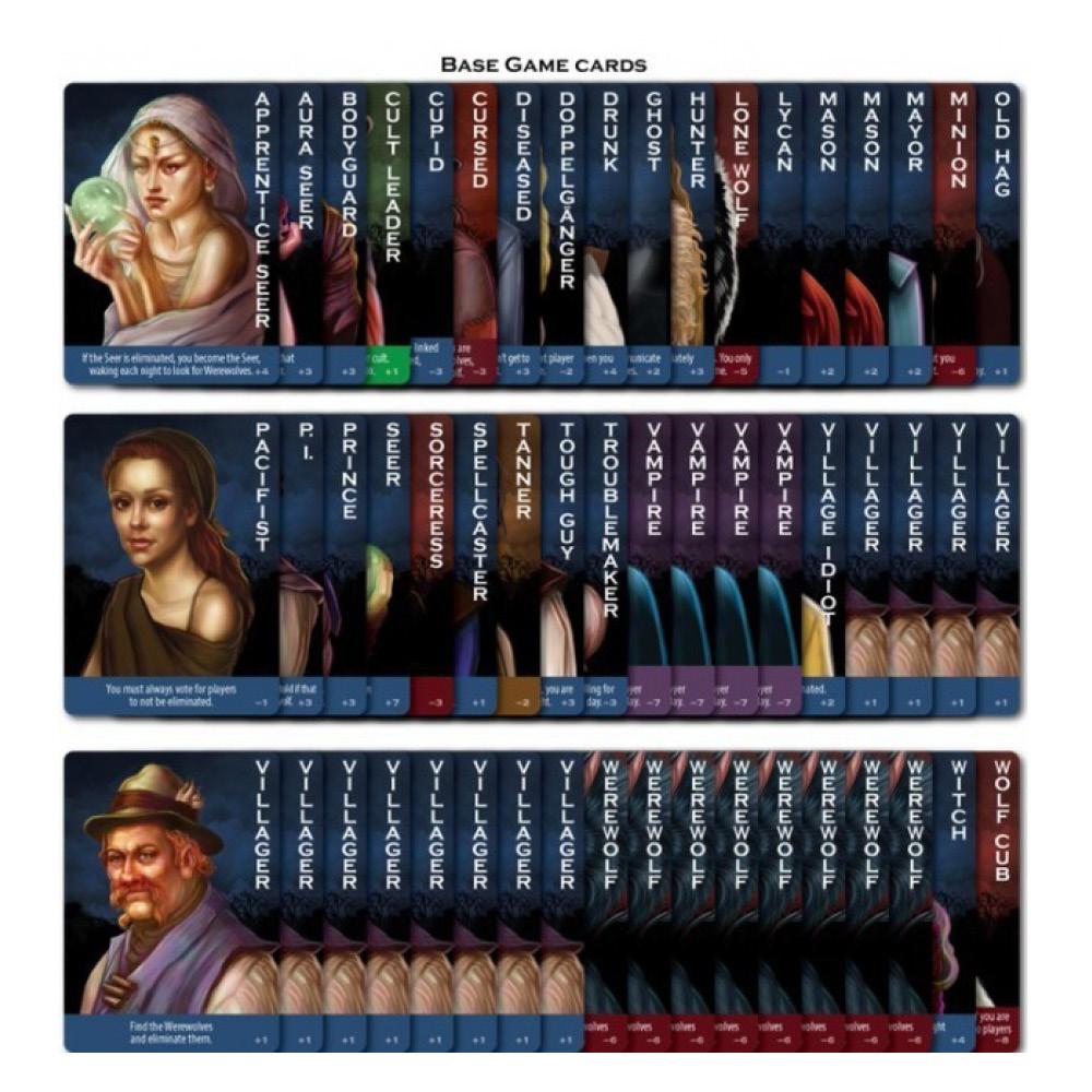 Ultimate Werewolf is an interactive game of deduction for two teams: Villagers and Werewolves. The Villagers don’t know who the Werewolves are, and the Werewolves are trying to remain undiscovered while they slowly eliminate the Villagers one at a time. A Moderator (who isn’t on a team) runs the game.