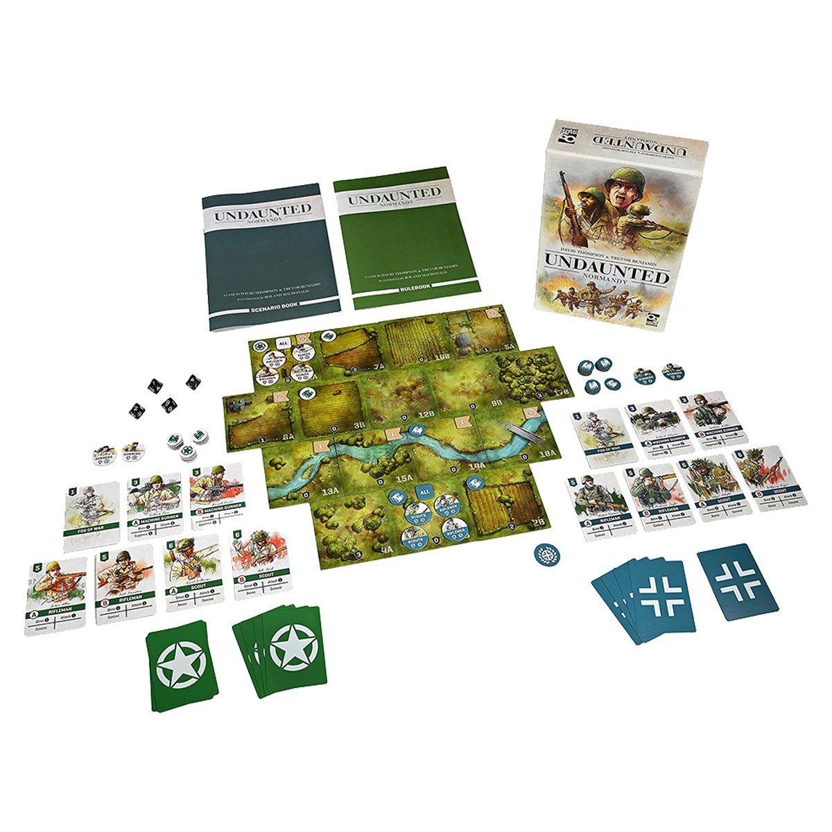 Undaunted: Normandy is a deck-building game that places you and your opponent in command of American or German forces, fighting through a series of missions critical to the outcome of World War II. Use your cards to seize the initiative, bolster your forces, or control your troops on the battlefield. Strong leadership can turn the tide of battle in your favor, but reckless decisions could prove catastrophic as every casualty you take removes a card from your deck. Take charge amidst the chaos of battle, hold fast in the face of opposition, and remain undaunted.