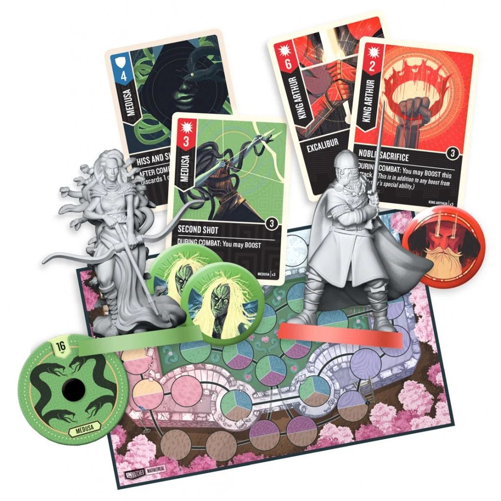 Unmatched is a highly asymmetrical miniature fighting game for two or four players. Each hero is represented by a unique deck designed to evoke their style and legend. Tactical movement and no-luck combat resolution create a unique play experience that rewards expertise, but just when you’ve mastered one set, new heroes arrive to provide all new match-ups.