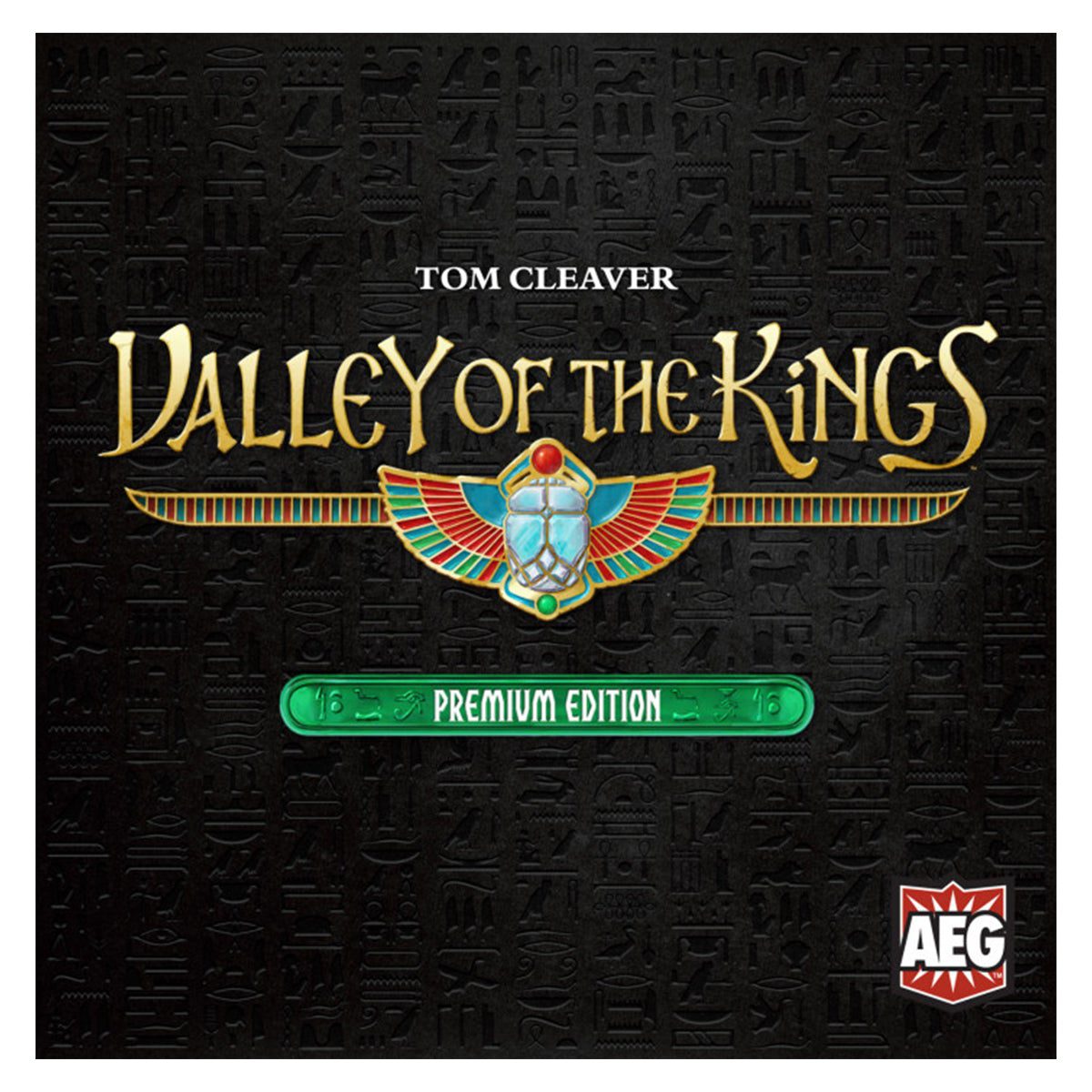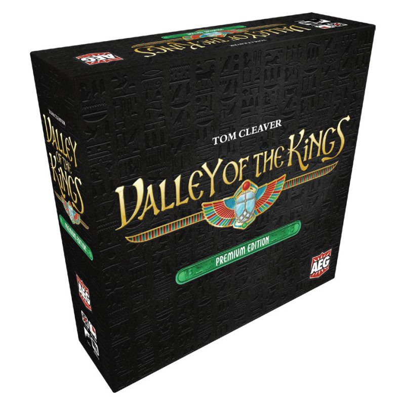 Valley of the Kings: Premium Edition includes all the cards from the three previously released games (Valley of the Kings, Valley of the Kings: Afterlife, Valley of the Kings: Last Rites), plus the components needed to play with a fifth and sixth player. It also includes rules for solo play, dividers for all the cards, and new pharaoh cards that give their holder unique abilities. The components are upgraded to 300+ tarot-sized cards.